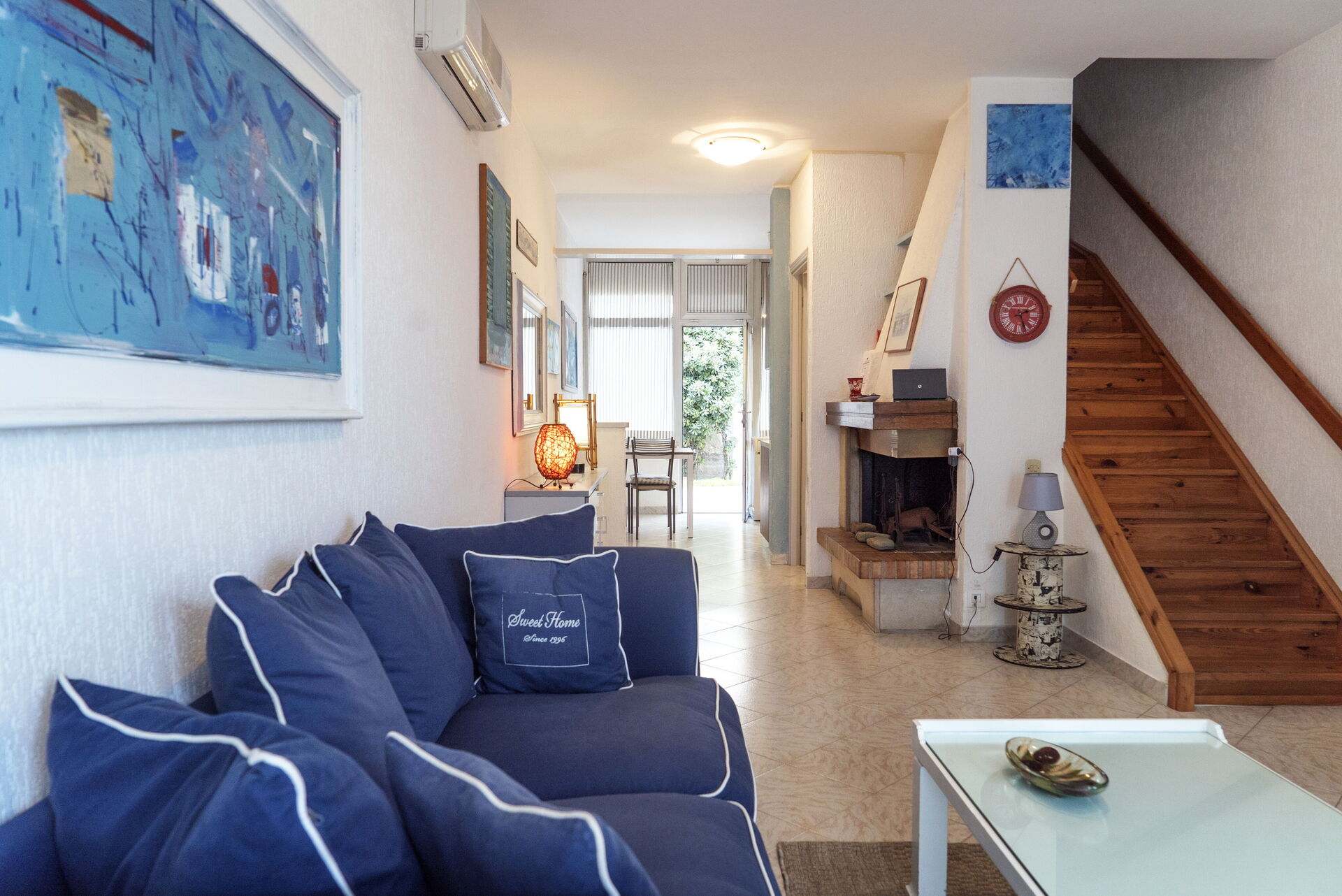 Soggiorno (20 m2): divano (persone: 3), caminetto, internet WIFI, aria condizionata, televisione, uscita sul giardino.