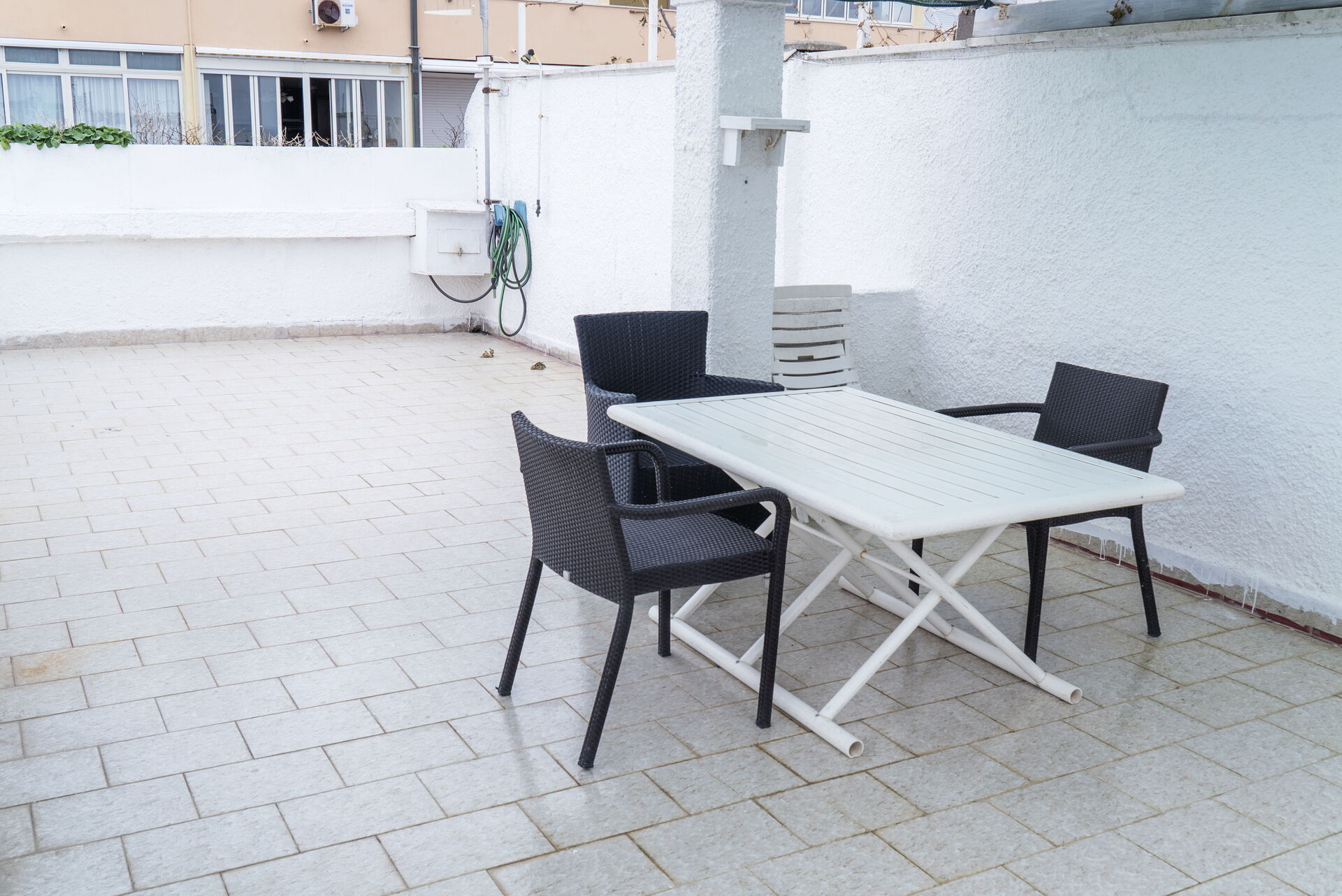 Terrazza (35 m2): possibilità di mangiare all'aperto, tavolo da pranzo (persone: 6), internet WIFI, arredamento da terrazza, sdraio.
