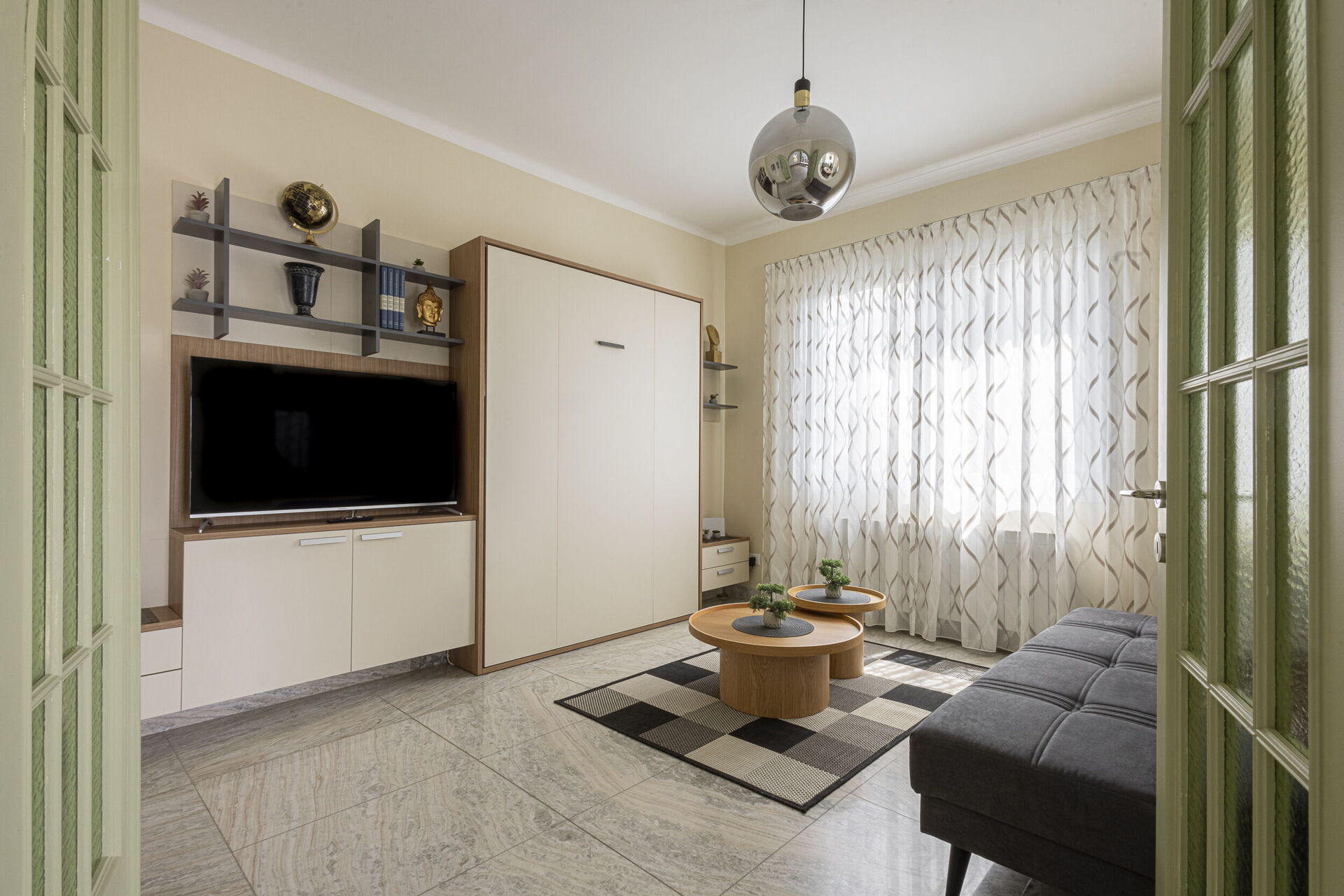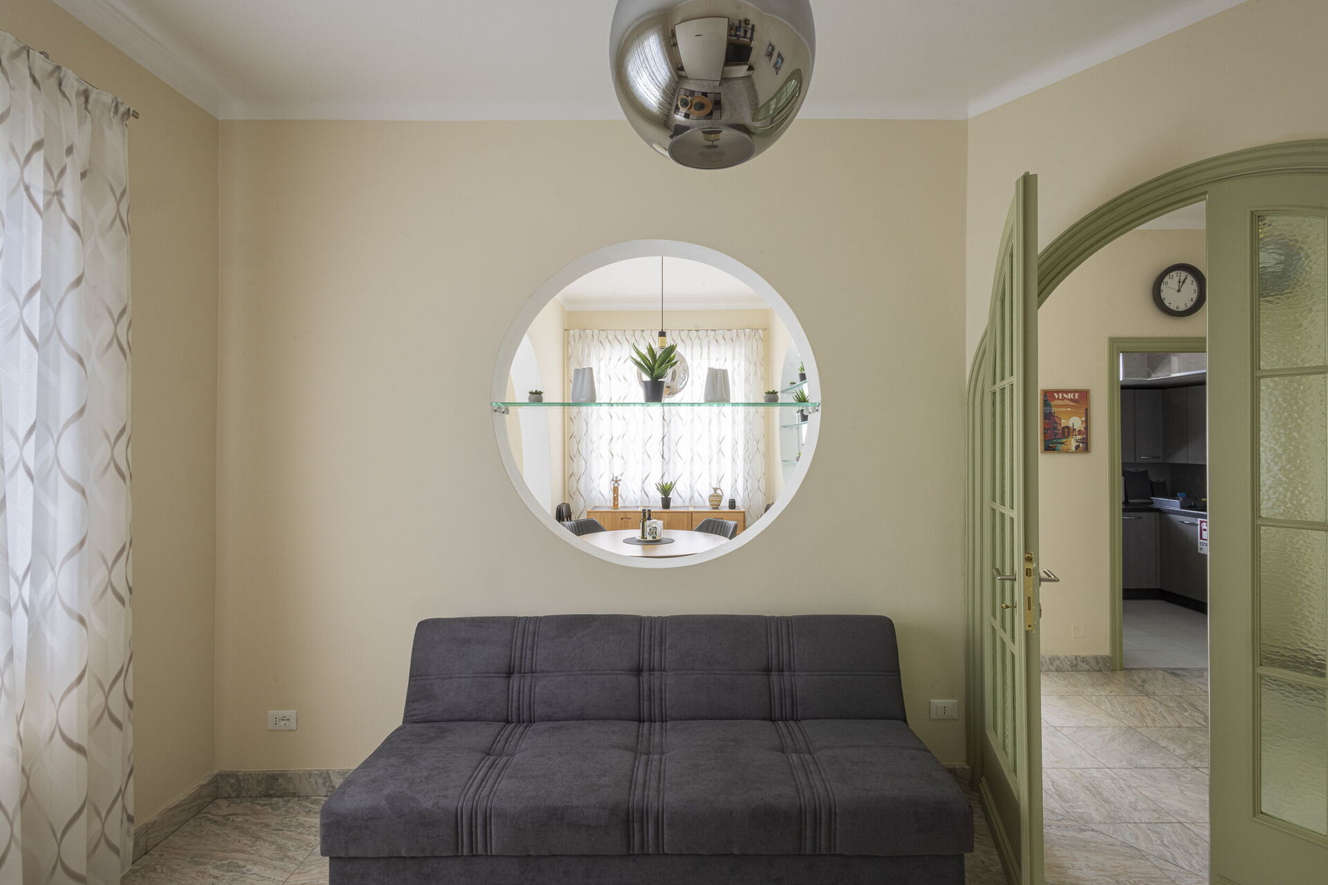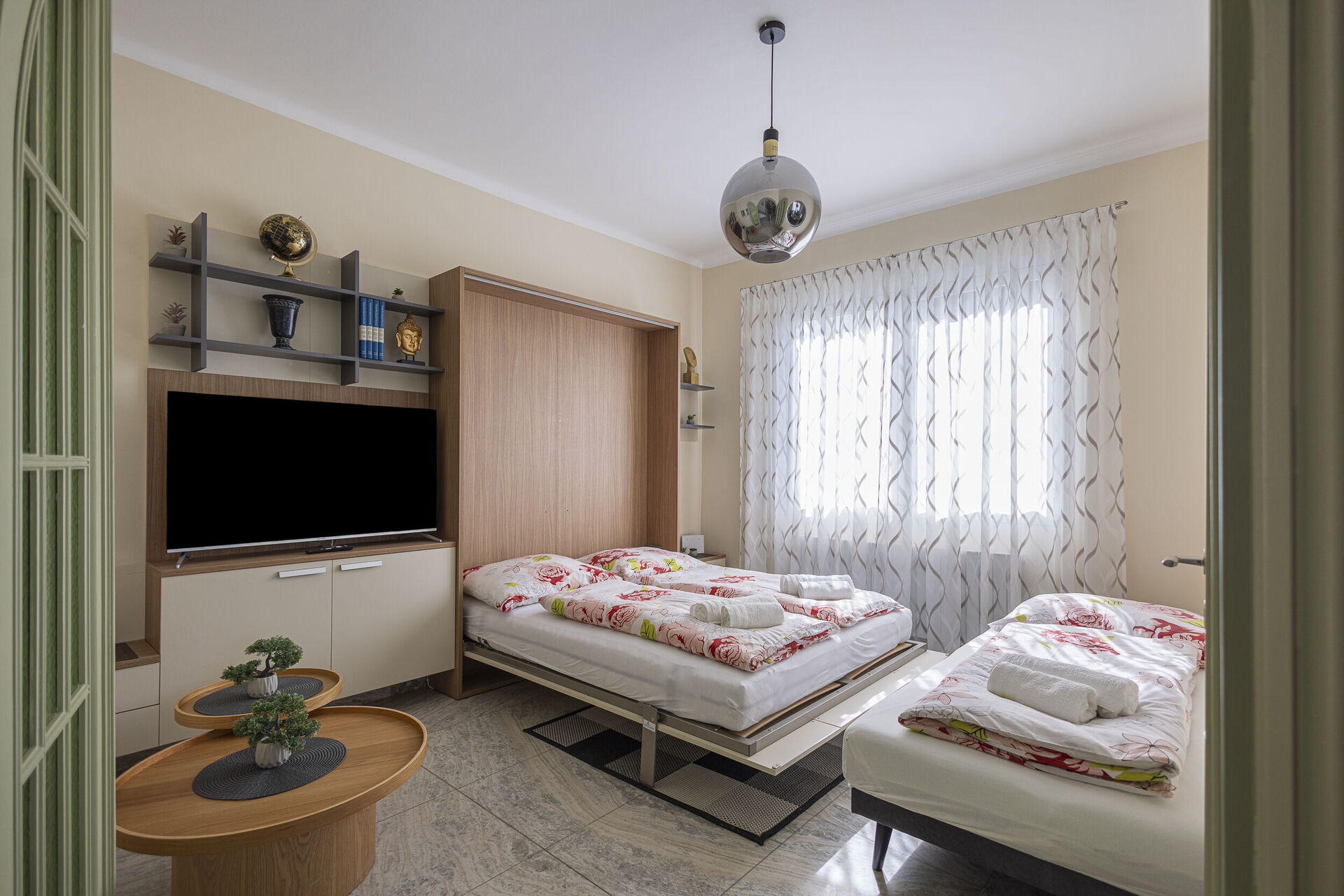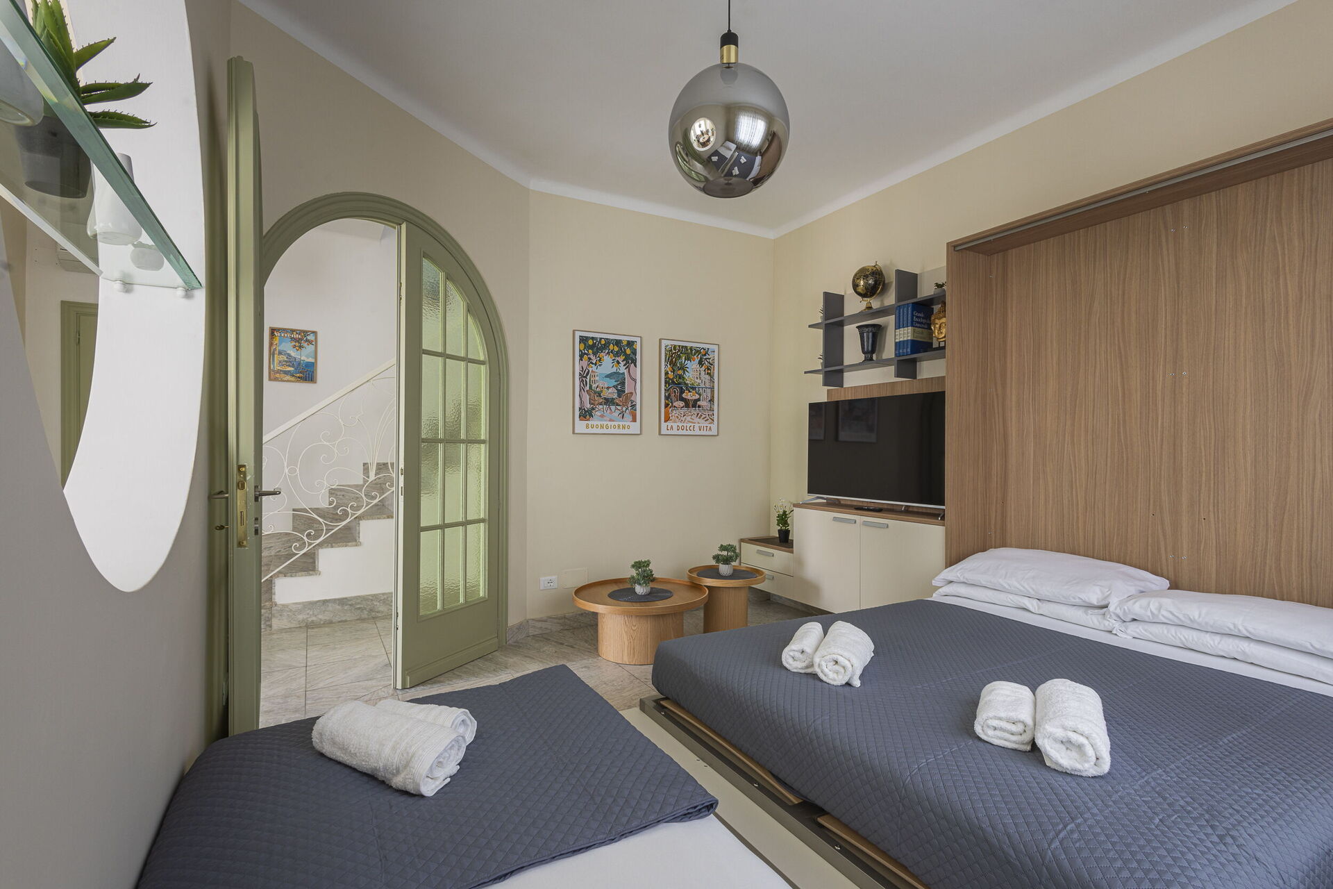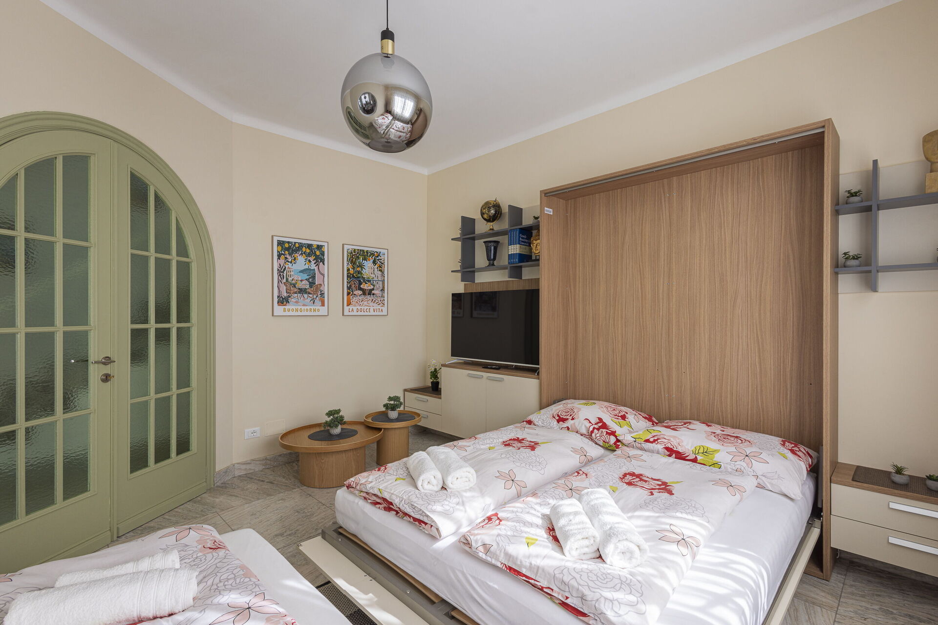 Soggiorno (22 m2): divano, divano letto matrimoniale, divano letto (larghezza: 1.6m, lunghezza: 2m), culla, internet WIFI, aria condizionata, televisione.