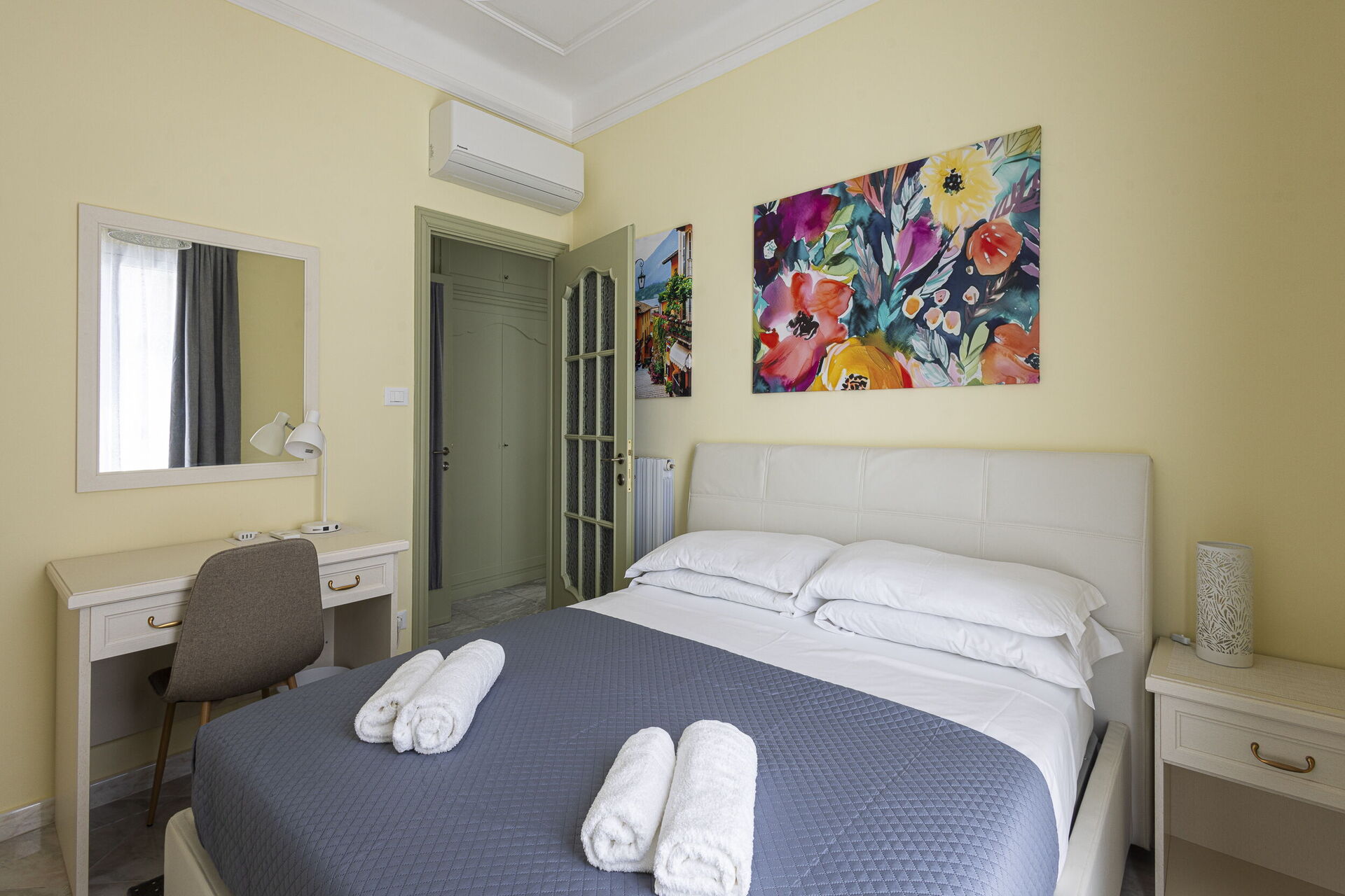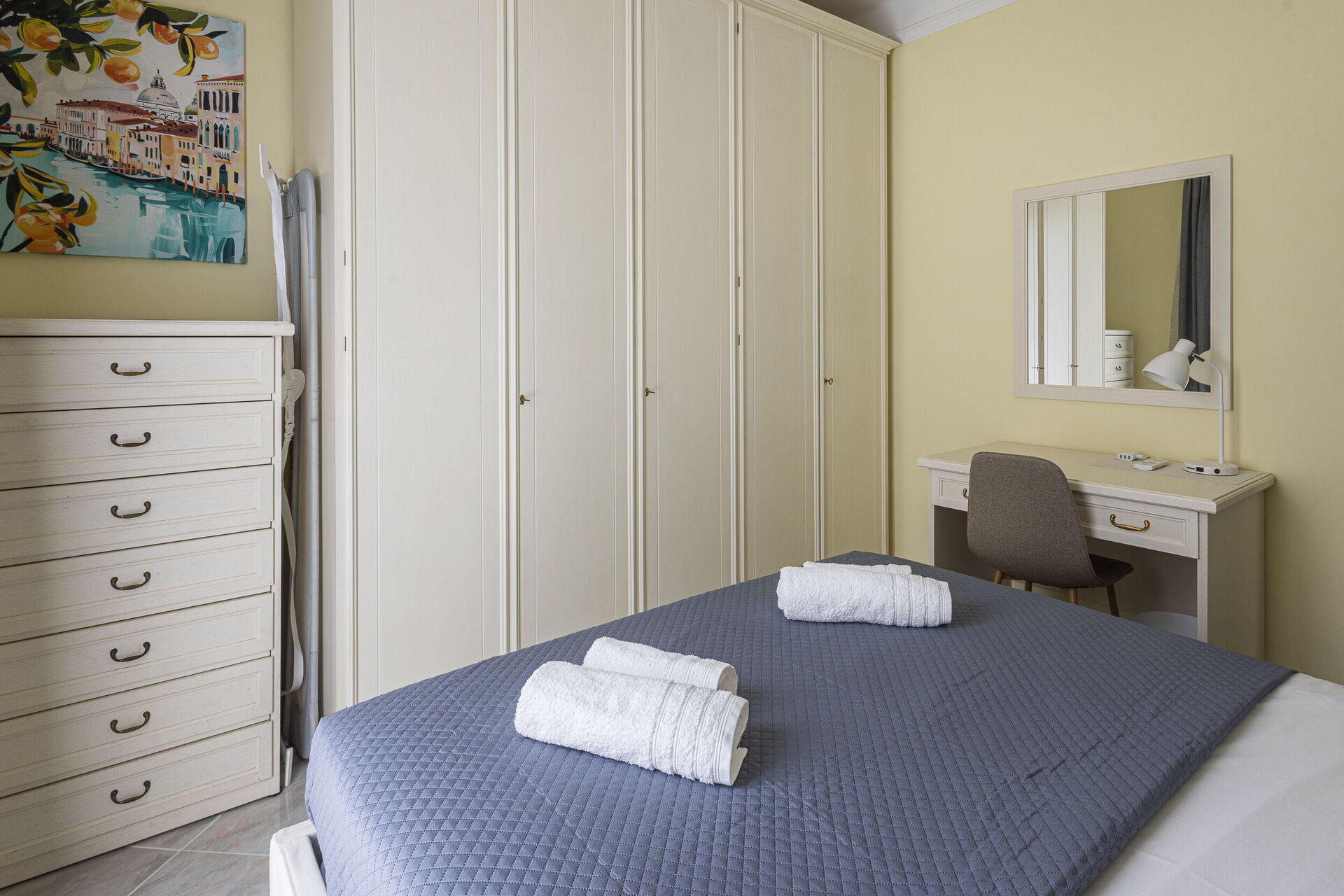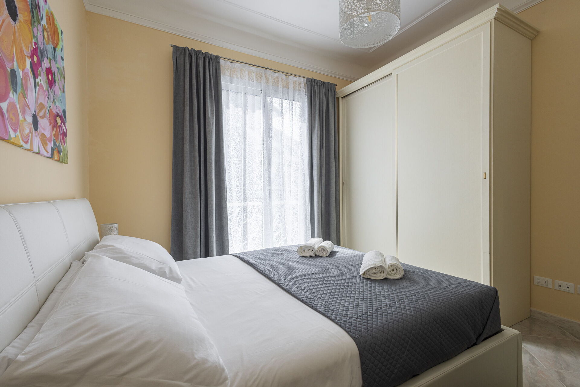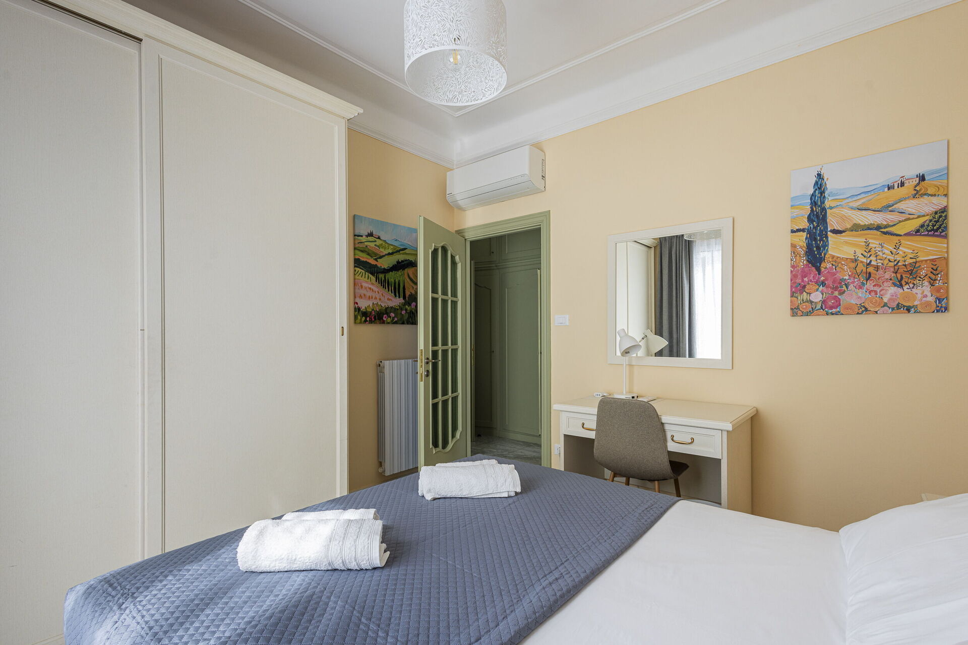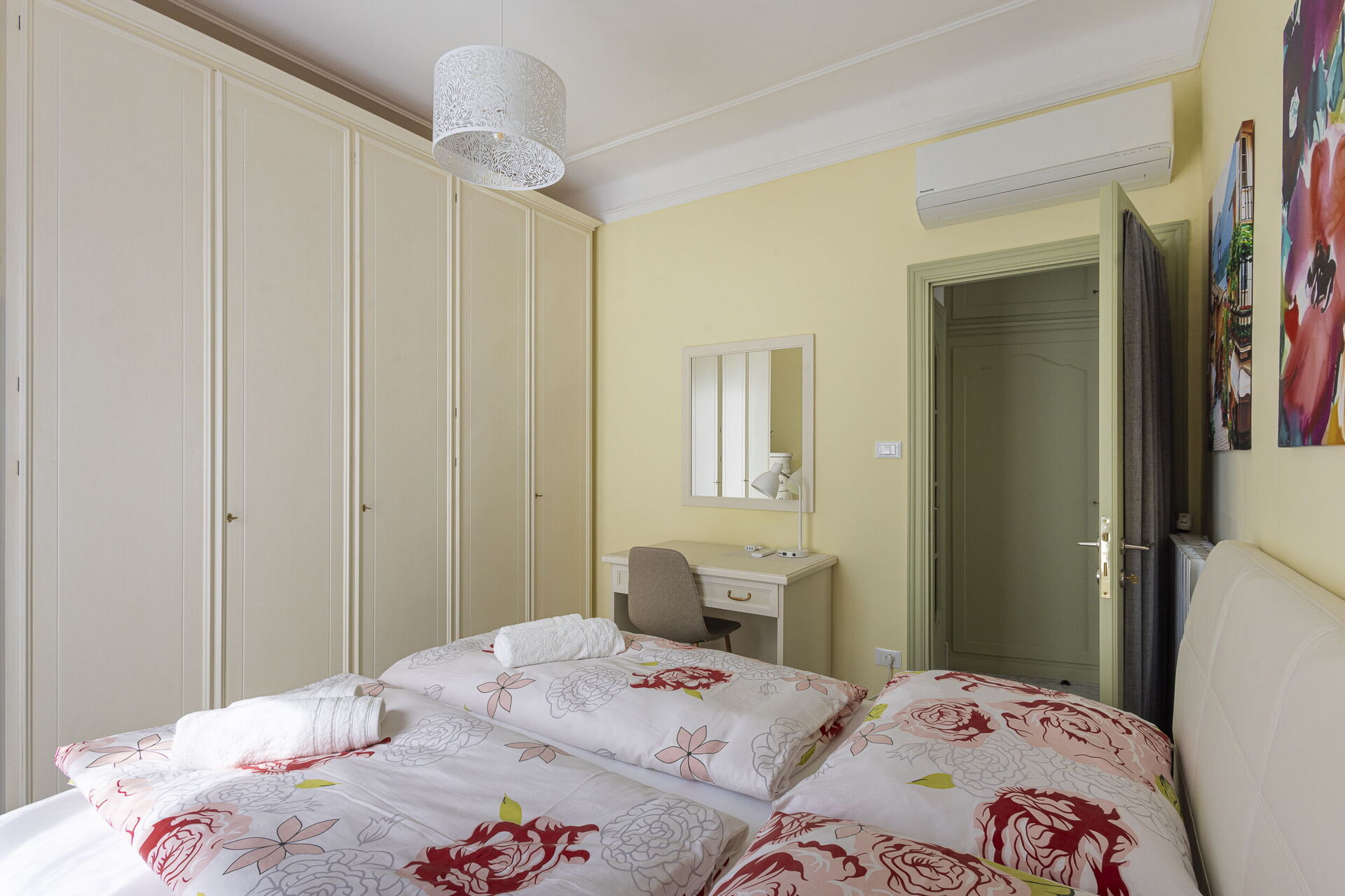 Camera da letto 1 (16 m2): letto matrimoniale (larghezza: 1.6m, lunghezza: 2m), culla, internet WIFI, aria condizionata, poltrona, scrivania, uscita sul balcone.