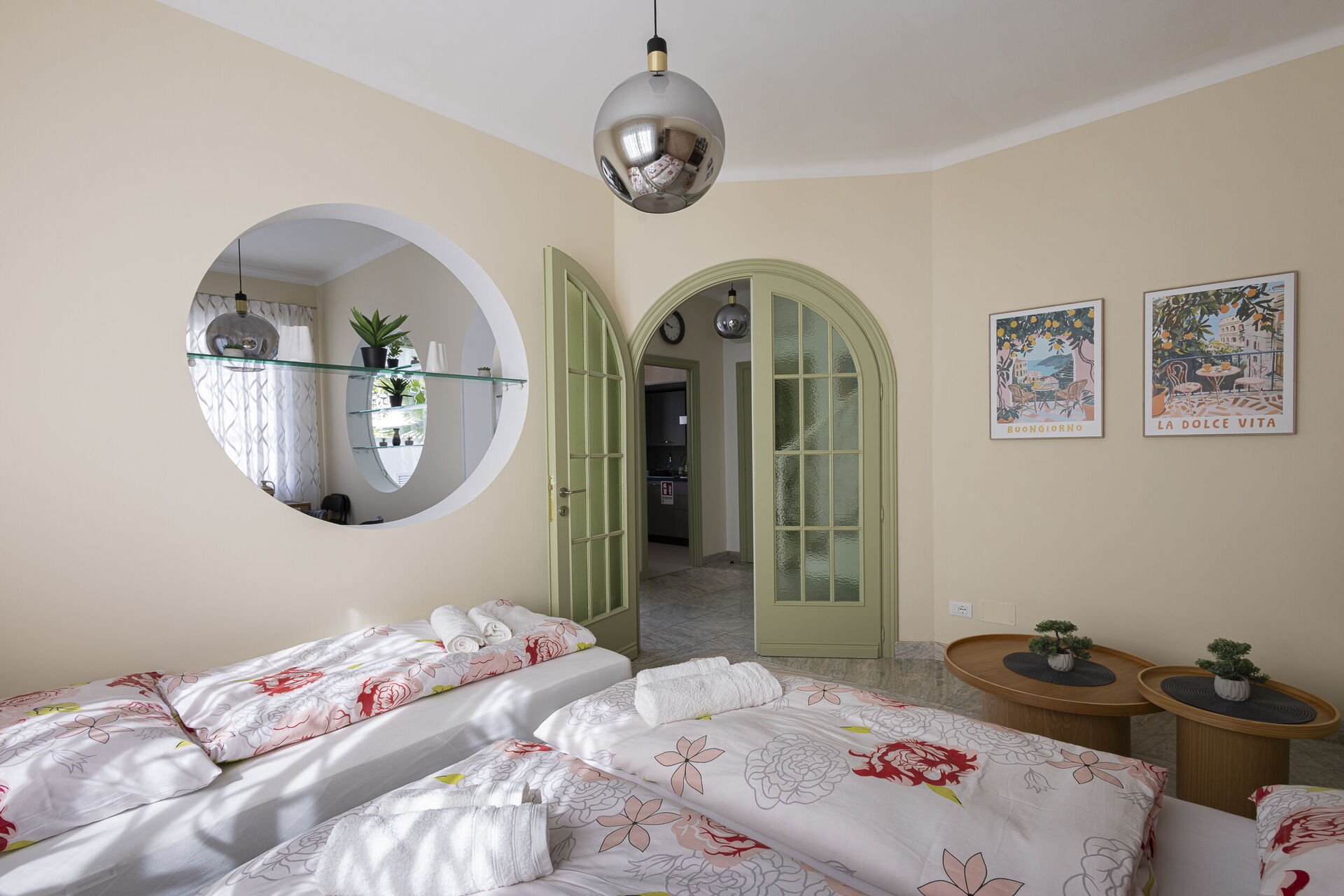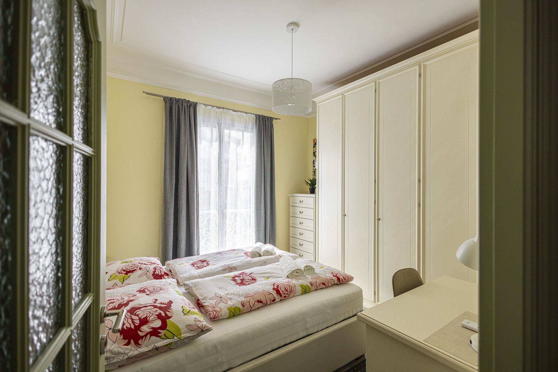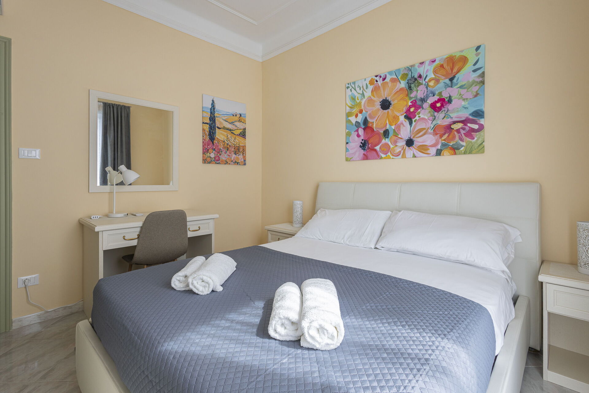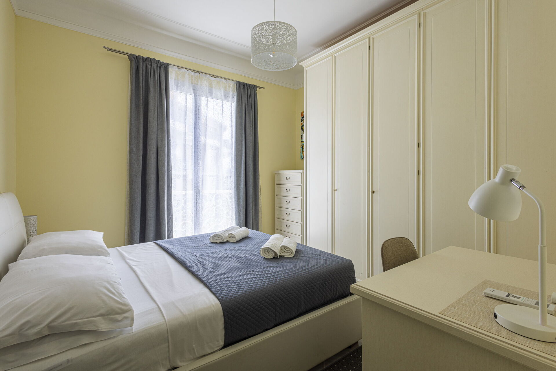 Camera da letto 1 (16 m2): letto matrimoniale (larghezza: 1.6m, lunghezza: 2m), culla, internet WIFI, aria condizionata, poltrona, scrivania, uscita sul balcone.