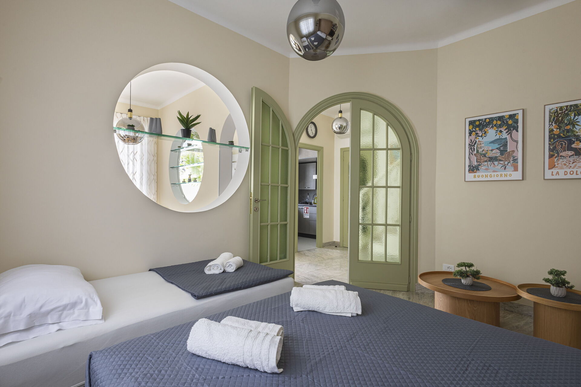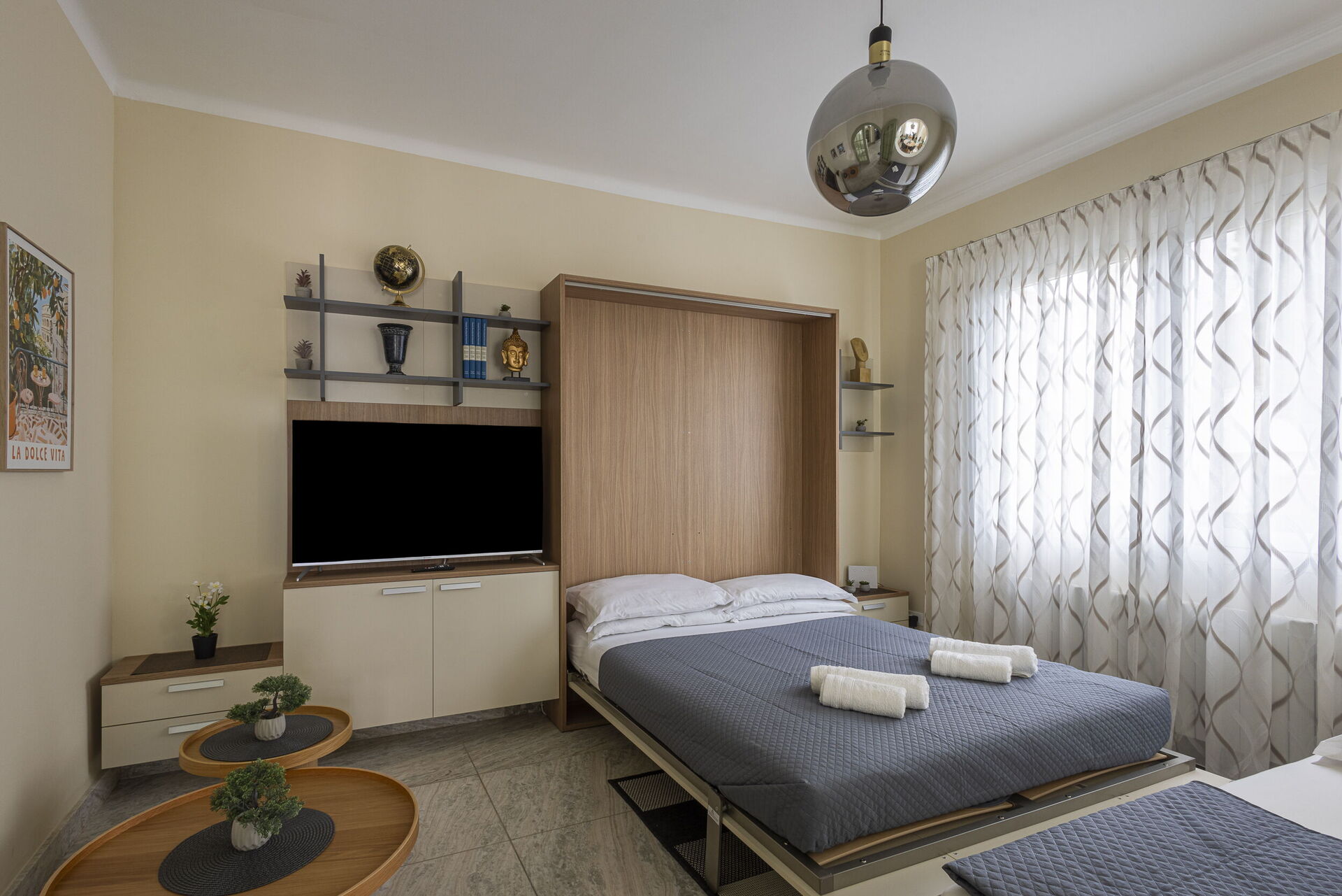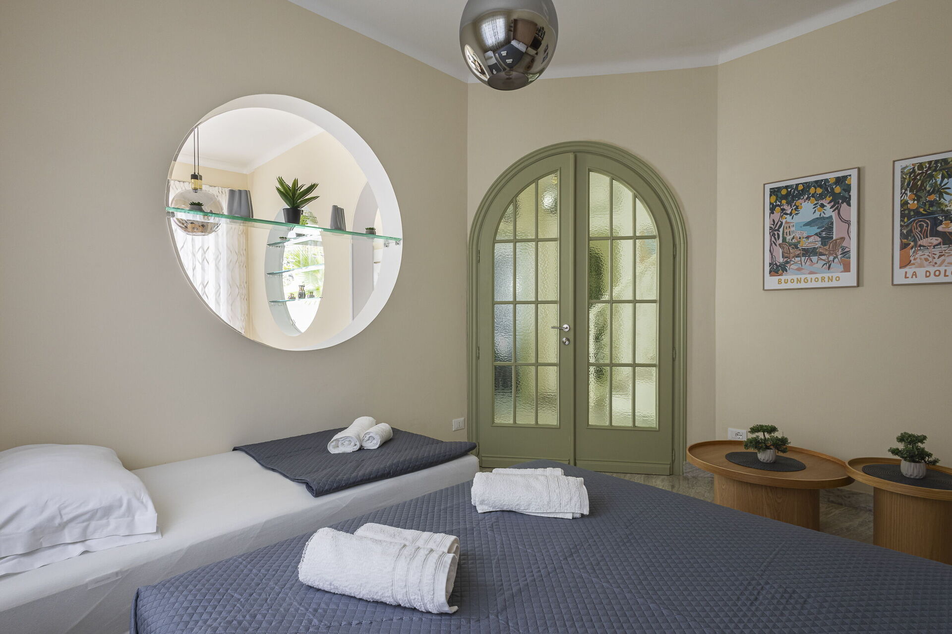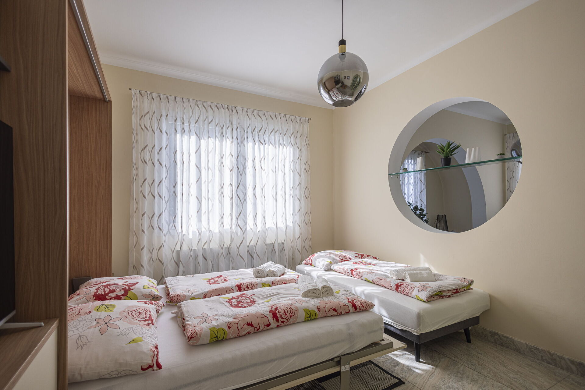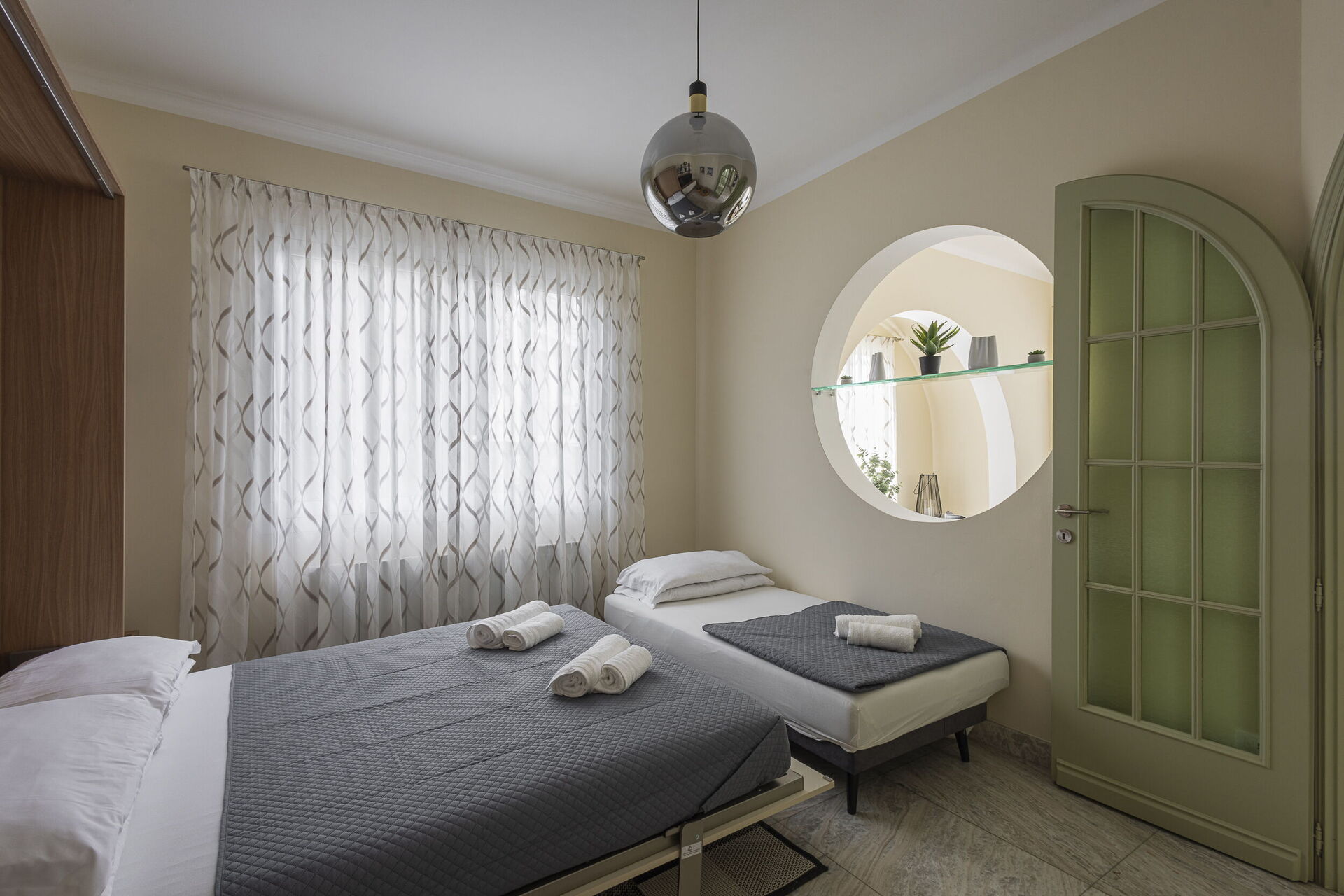 Camera da letto 1 (16 m2): letto matrimoniale (larghezza: 1.6m, lunghezza: 2m), culla, internet WIFI, aria condizionata, poltrona, scrivania, uscita sul balcone.