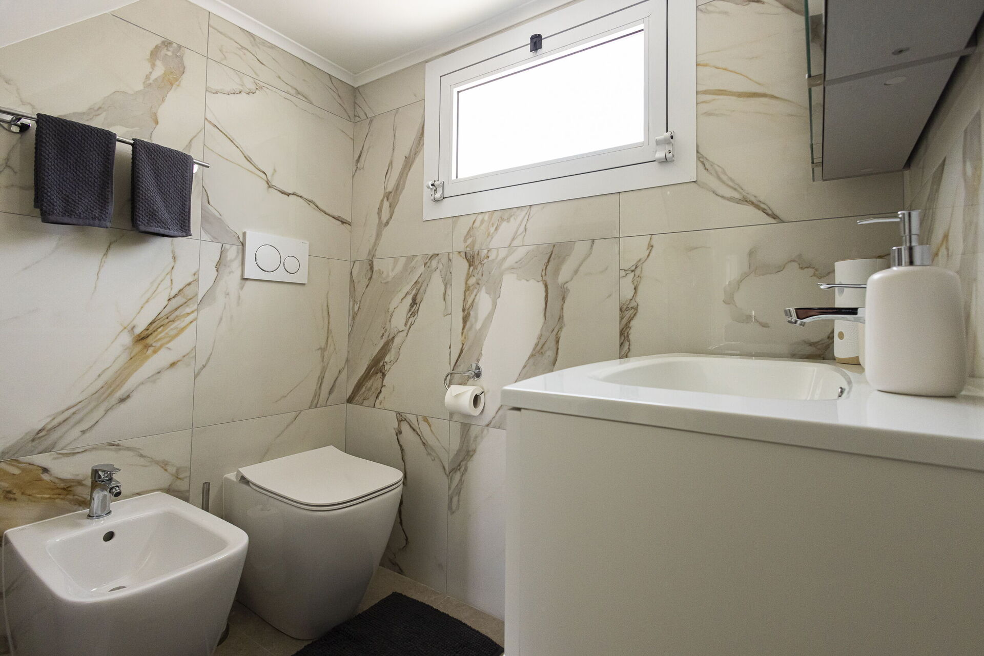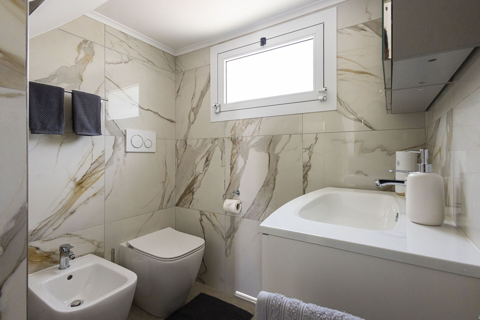 Toilette: lavandino, wc, bidet, asciugacapelli.
