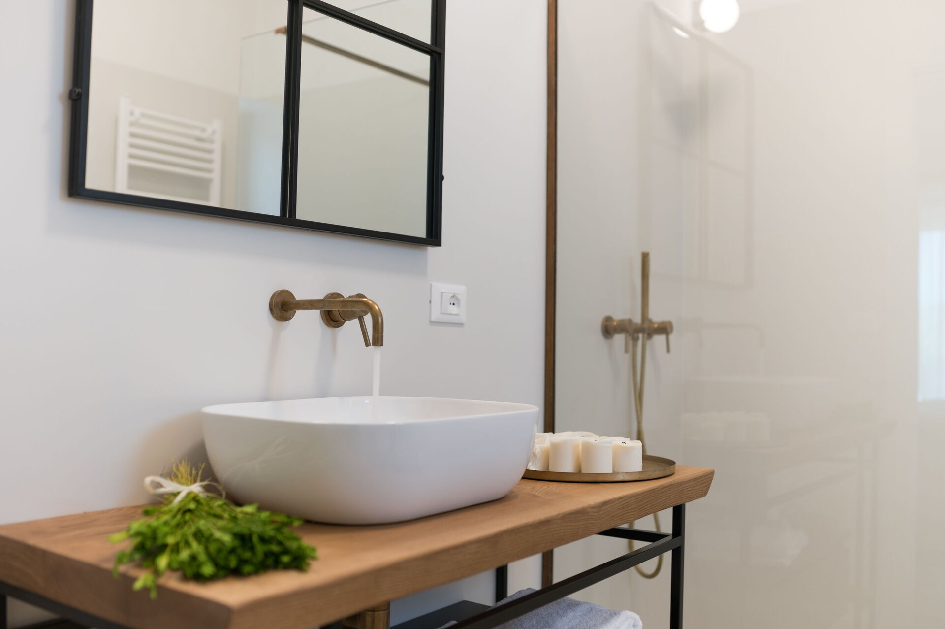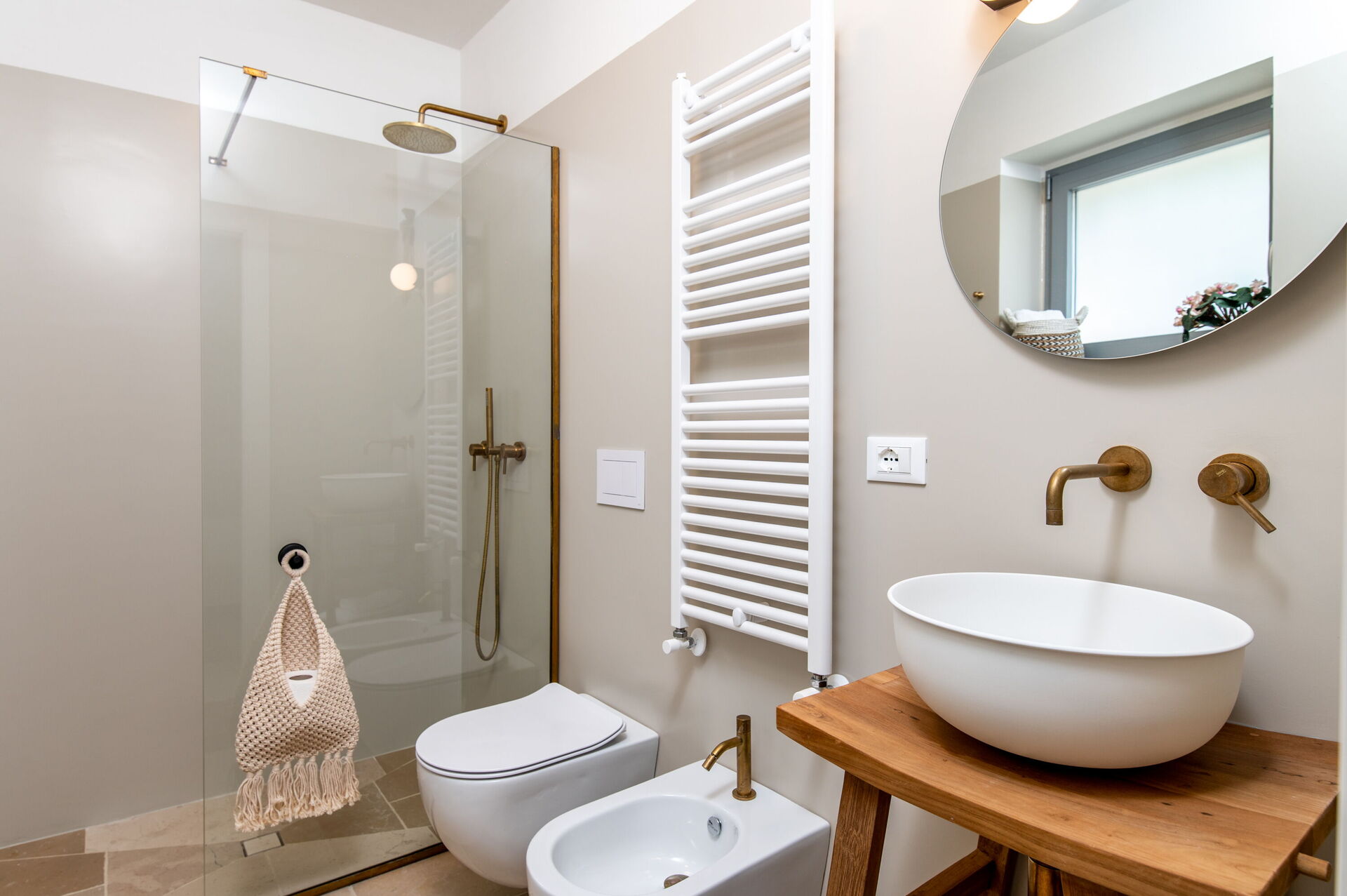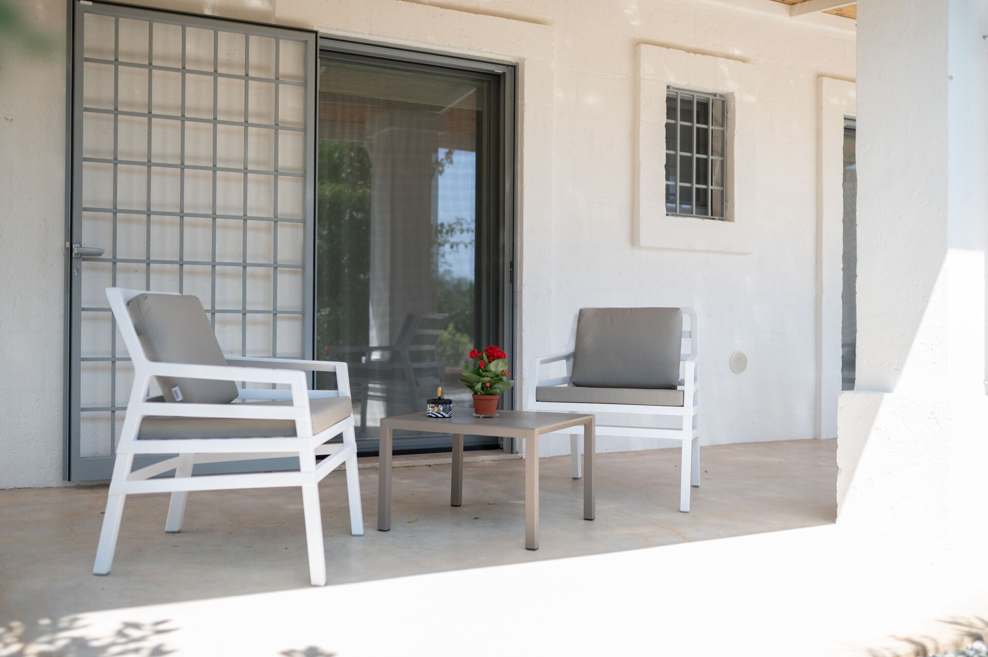 Camera da letto con bagno 3: letto matrimoniale, internet WIFI, internet, aria condizionata, zanzariere, bidet, asciugacapelli, rilevatore di fumo, rilevatore di co2, uscita sul giardino, uscita sul patio.