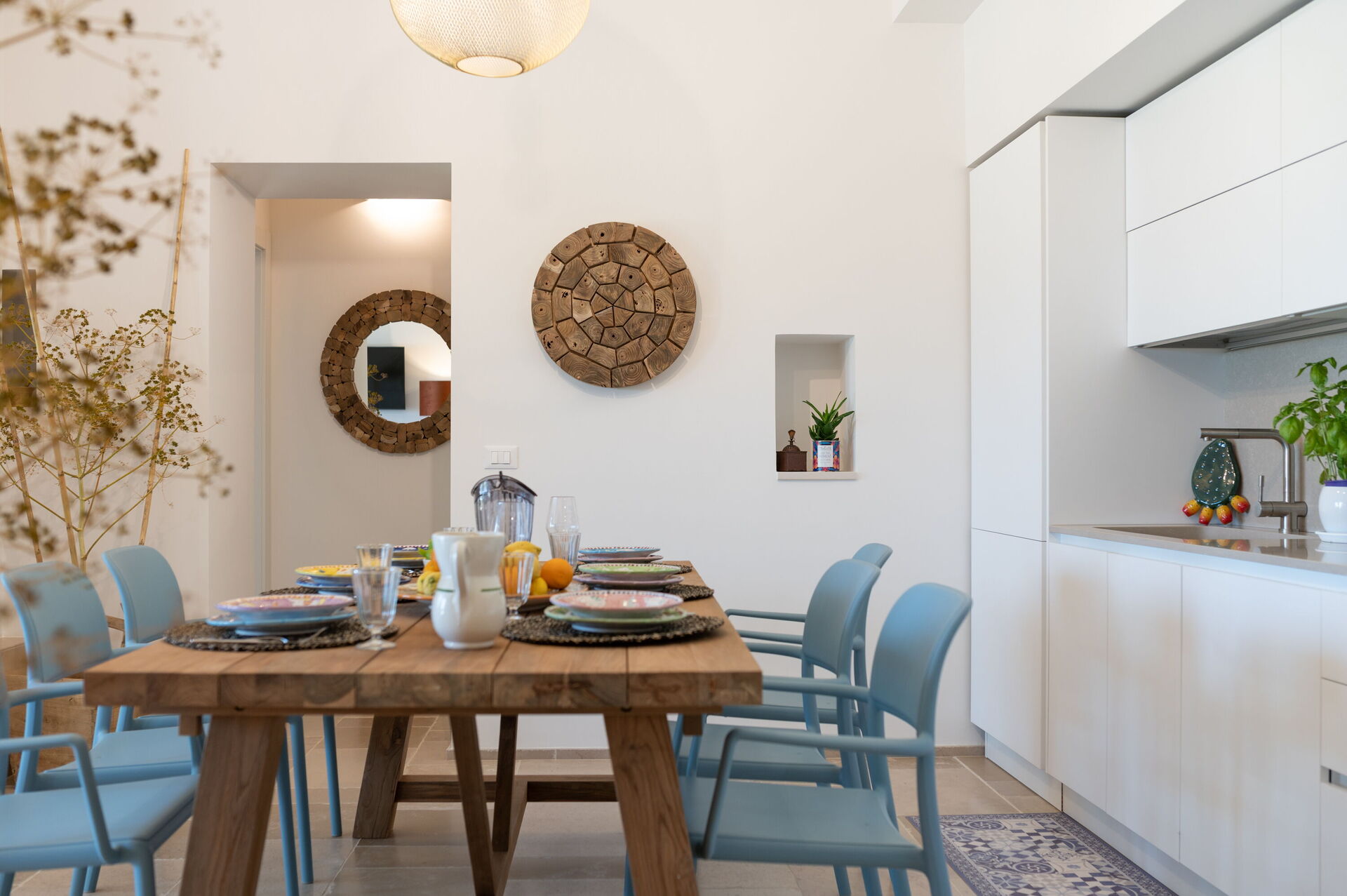 Una volta arrivato sarai accolto dal proprietario o dal gestore della tua incantevole casa vacanze, una proprietà pulita e tenuta in ottime condizioni con vista sul mare e sulla città, ideale per una rilassante vacanza in Puglia. Dopo una impegnativa giornata ricca di shopping, concediti del tempo con famiglia e amici a bordo piscina per gustarti una bibita rinfrescante o un buon calice di vino - non c'è niente di meglio per riposarti alla fine della giornata. Fuori avrai a tua disposizione anche un patio e un barbecue. Condividere un pasto in compagnia di famiglia e amici è un importante aspetto della cultura italiana. Approfitta della cucina ben accessoriata per preparare pasti utilizzando prodotti locali freschi e genuini mentre ti trovi in vacanza. La cucina è provvista di macchinetta del caffè, microonde, tostapane e frigorifero, così come un numero sufficiente di stoviglie e posate per un massimo di sei persone. Pranza o cena all'aperto, la veranda completamente accessoriata è la cornice perfetta per godersi del buon cibo, la compagnia della propria famiglia o gruppo di amici e il piacevole clima italiano.