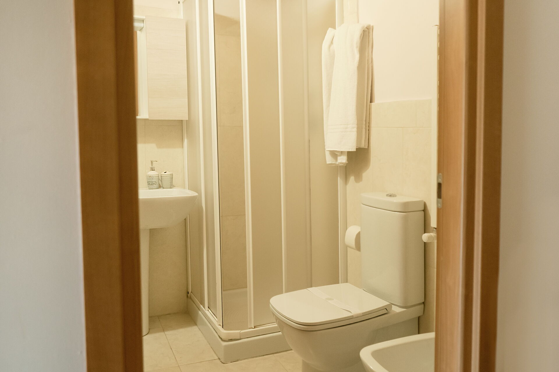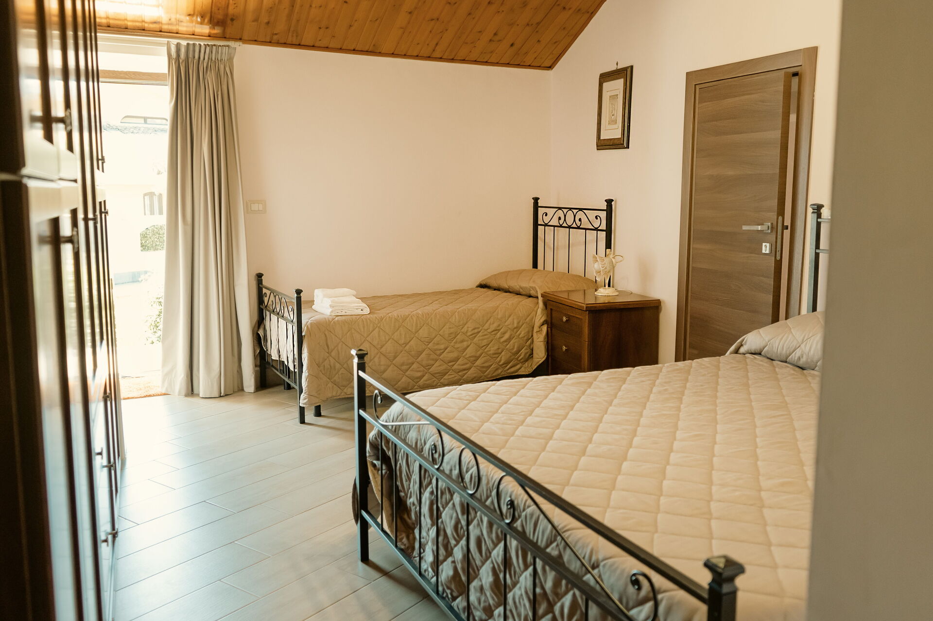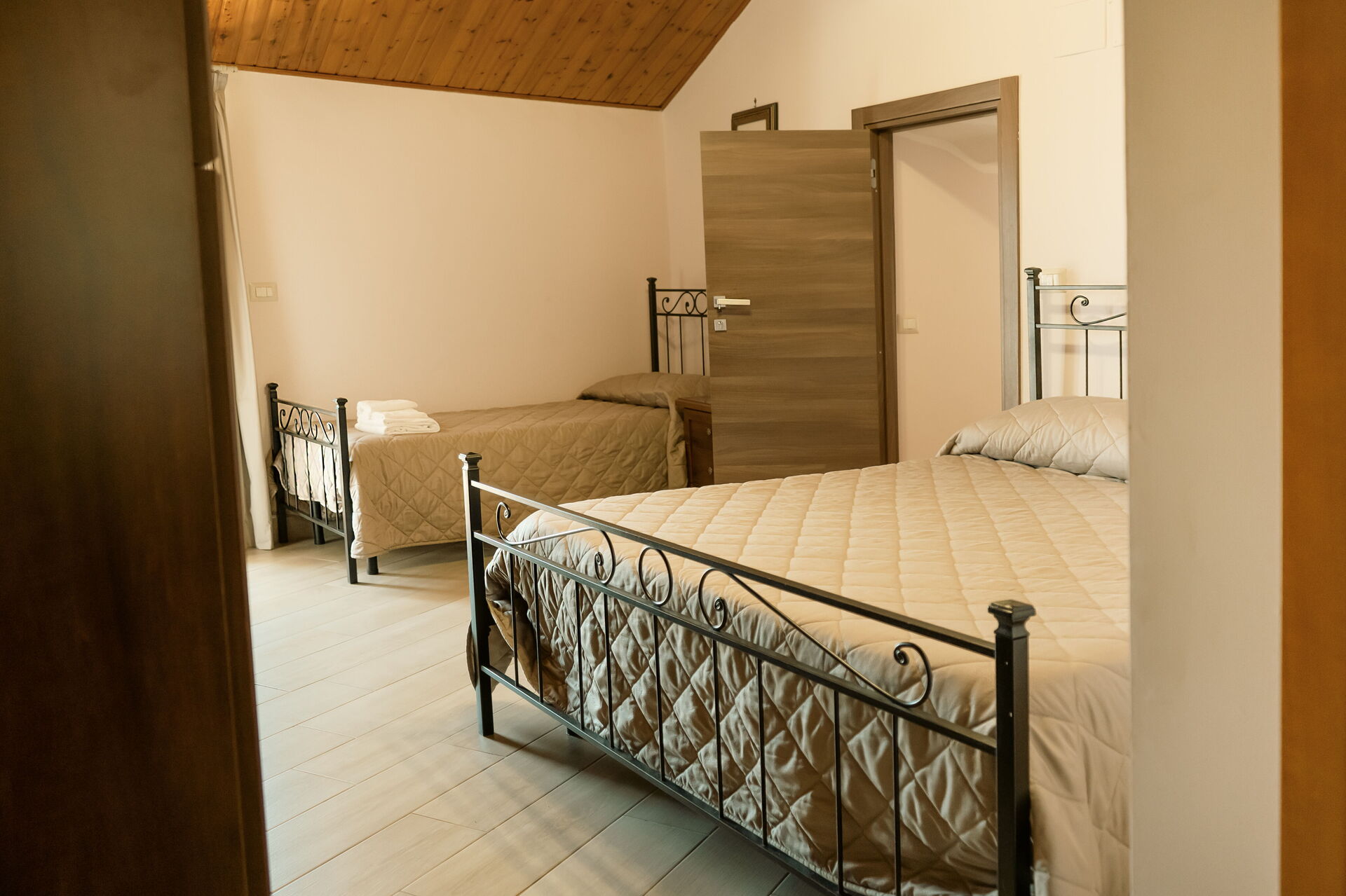 Camera da letto con bagno (65 m2): letto matrimoniale, letto singolo, internet WIFI, aria condizionata, scrivania, lavandino, wc, bidet, asciugacapelli.