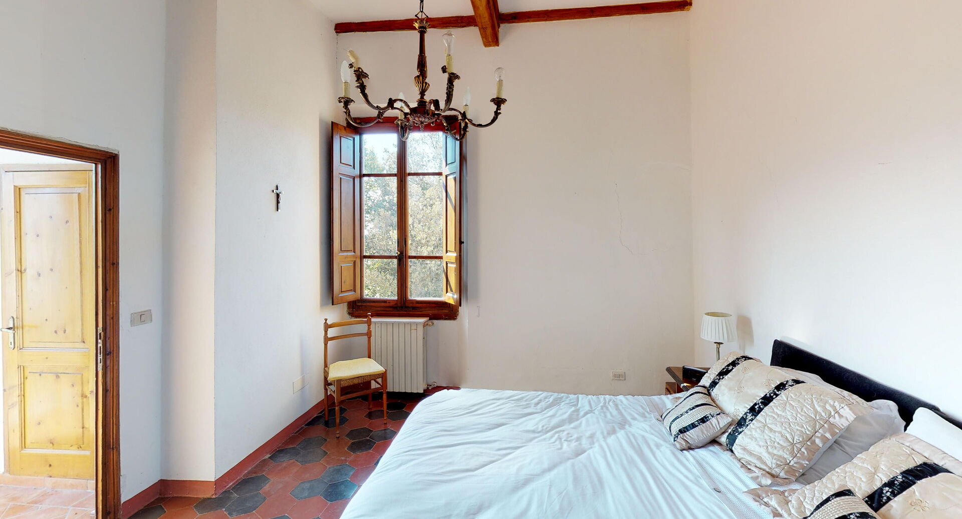 All'arrivo sarai accolto dal proprietario o dal gestore della tua bellissima casa vacanze, una proprietà pulita e tenuta in ottime condizioni con vista sulle colline, perfetta per una rilassante vacanza in Toscana. Dopo una frenetica giornata ricca di shopping, concediti del tempo con famiglia e amici a bordo piscina per gustarti una bibita rinfrescante o un buon calice di vino - non c'è niente di meglio per rilassarti alla fine della giornata. Avrai a tua disposizione all'aperto anche un barbecue e un patio. Se provi piacere nel cucinare per la tua famiglia e i tuoi amici, la proprietà è provvista di una cucina ben accessoriata con tostapane, fornelli e frigorifero, così come un numero sufficiente di stoviglie e posate per un massimo di dieci persone. Se preferisci mangiare all'aperto, c'è a tua disposizione una veranda completamente accessoriata dove potrai goderti il bel tempo durante i tuoi pasti.