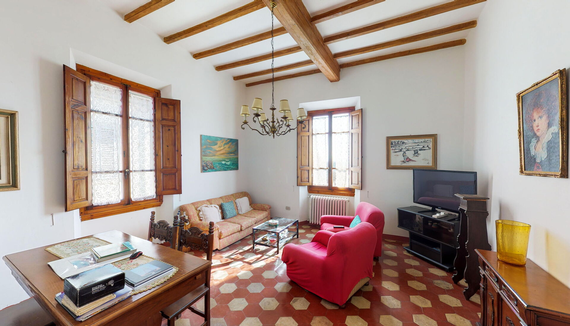 Comprende: cucina, soggiorno, 5 camere da letto, 3 bagni, stanza di servizio.