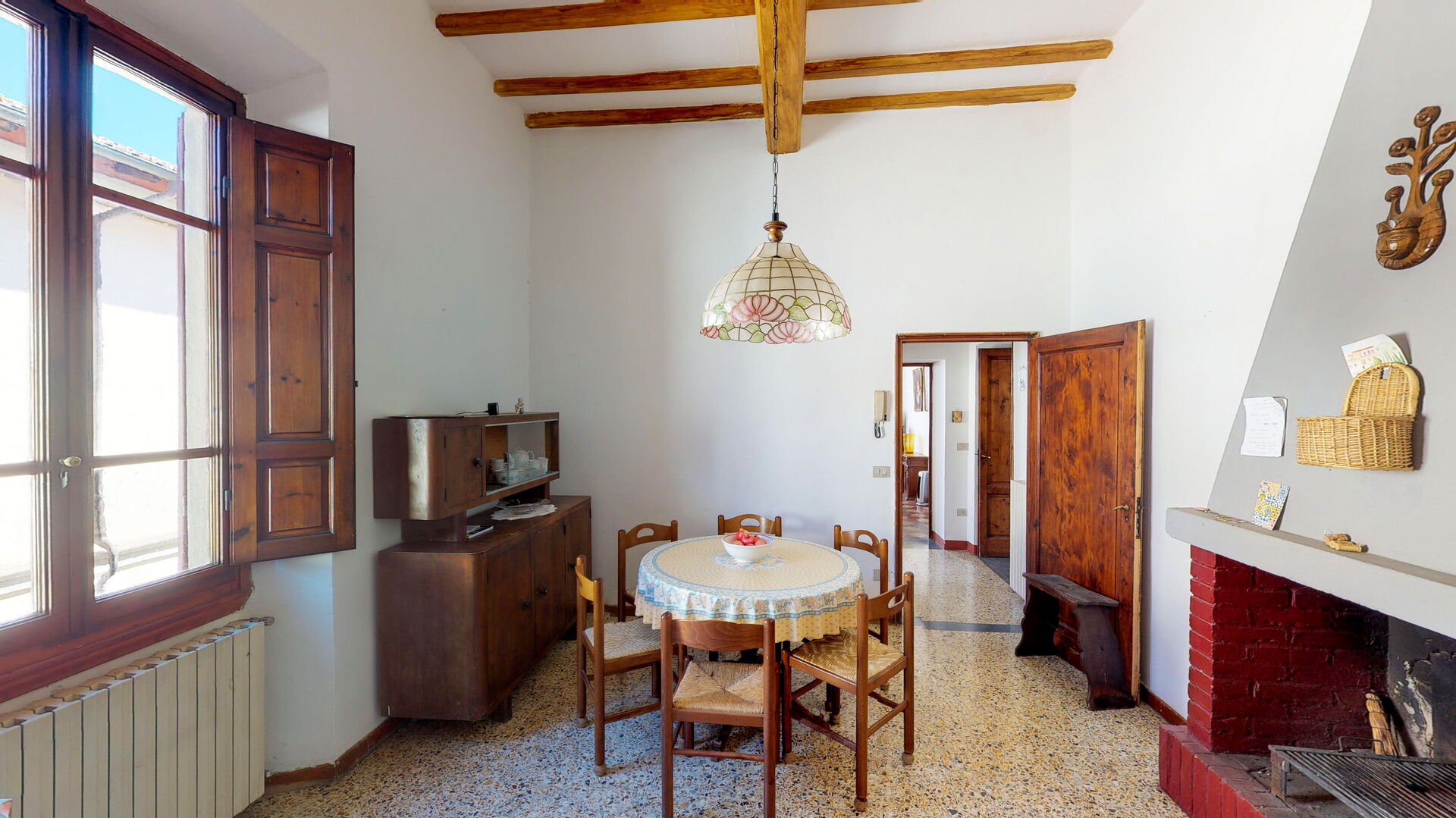 Cucina (36 m2): cucina ben attrezzata, tavolo da pranzo (persone: 6), frigo, freezer, piano cottura, forno, tostapane, caminetto, internet WIFI, internet, seggiolone, ventilatore portatile, rilevatore di fumo.