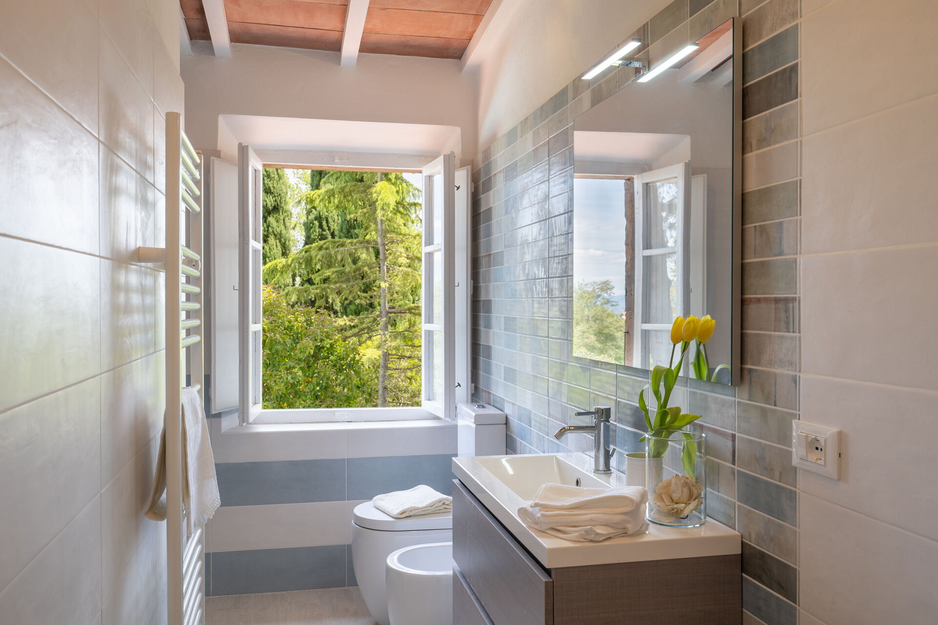 Una volta arrivato a Villa Luana troverai una elegante casa vacanze, pulita e tenuta in ottime condizioni con vista sulle colline, perfetta per una piacevole vacanza in Toscana. A prescindere da come trascorrerai le tue giornate - visitando i più famosi musei della zona, imbarcandoti in gite fuori porta, facendo shopping o semplicemente guidando nell'entroterra, quando arriverai a casa la sera avrai la possibilità di riposarti con famiglia e amici a bordo piscina concludendo in bellezza un altro fantastico giorno di vacanza in Toscana. Mangiare in compagnia di famiglia e amici è un grande aspetto della cultura toscana. Approfitta della cucina ben accessoriata per preparare pasti utilizzando prodotti locali freschi e genuini mentre ti trovi in vacanza. La cucina è provvista di macchinetta del caffè, microonde, tostapane e frigorifero, così come un numero sufficiente di stoviglie e posate per un massimo di nove persone. Pranza o cena all'aperto, il giardino completamente accessoriato è la cornice ideale per godersi del buon cibo, la compagnia della propria famiglia o gruppo di amici e il bellissimo clima toscano.
