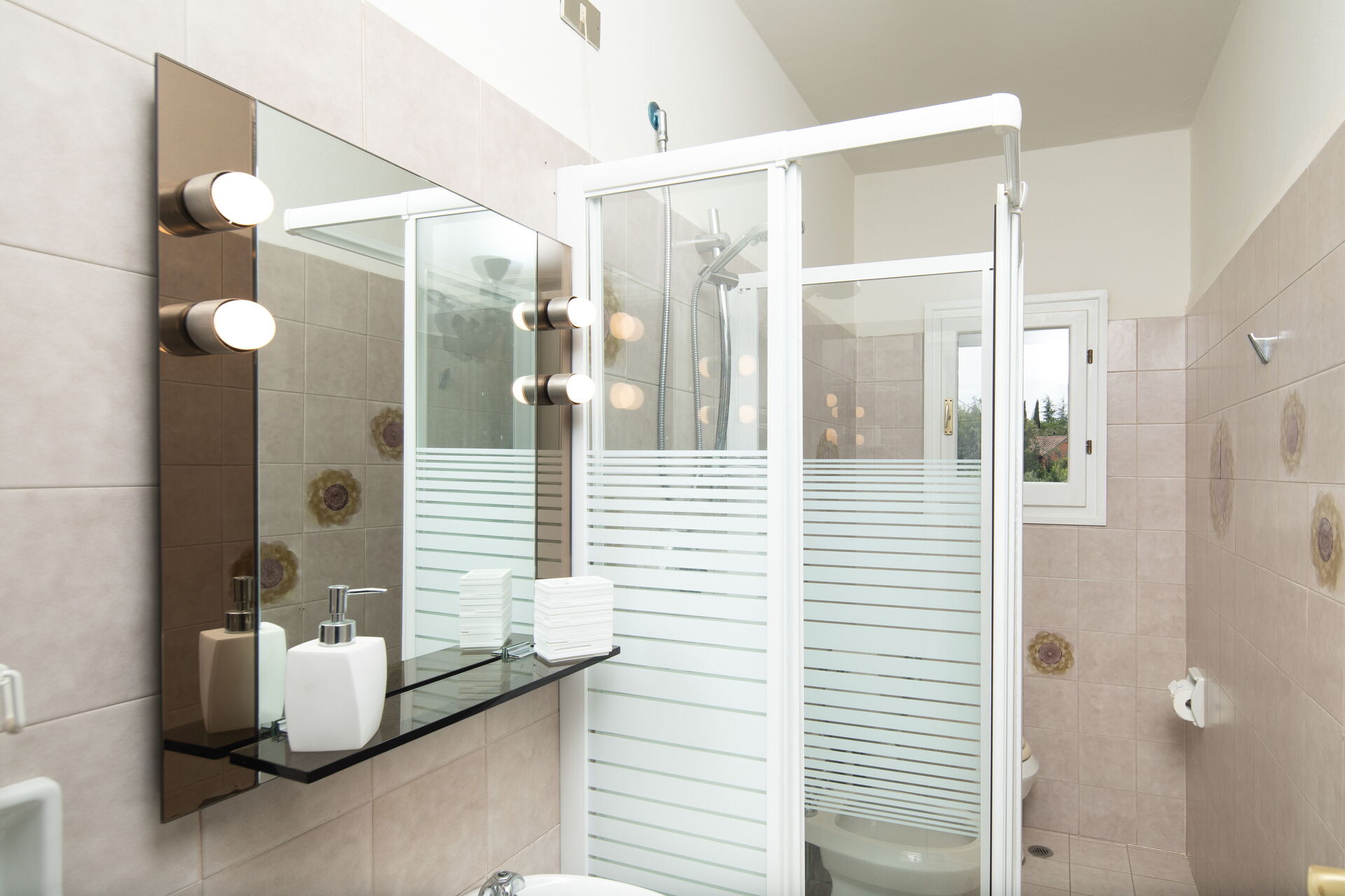 Bagno 1: lavandino, wc, bidet, doccia.