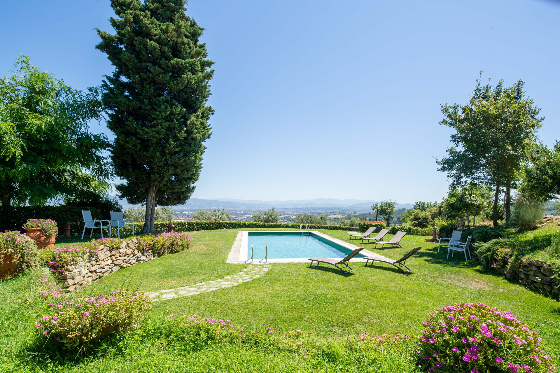 Una volta arrivato troverai una elegante casa vacanze pulita e in ottime condizioni con vista sulla città, perfetta per una piacevole vacanza in Toscana. A prescindere da come trascorrerai le tue giornate - imbarcandoti in gite fuori porta, facendo shopping, visitando i più famosi musei della zona o semplicemente guidando nell'entroterra, quando arriverai a casa la sera avrai la possibilità di riposarti con famiglia e amici a bordo piscina concludendo in bellezza un altro fantastico giorno di vacanza in Toscana. Per il tuo divertimento, sul posto troverai un patio e un barbecue. Se provi piacere nel cucinare per la tua famiglia e i tuoi amici, la proprietà è provvista di una cucina ben accessoriata con macchinetta per il caffè, microonde, tostapane e frigorifero, così come un numero sufficiente di stoviglie e posate per un massimo di 15 persone. Se preferisci mangiare all'aperto, c'è a tua disposizione un patio completamente accessoriato dove potrai goderti il bel tempo durante i tuoi pasti.