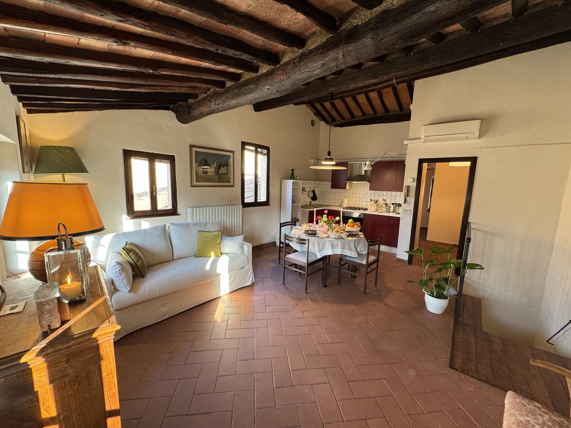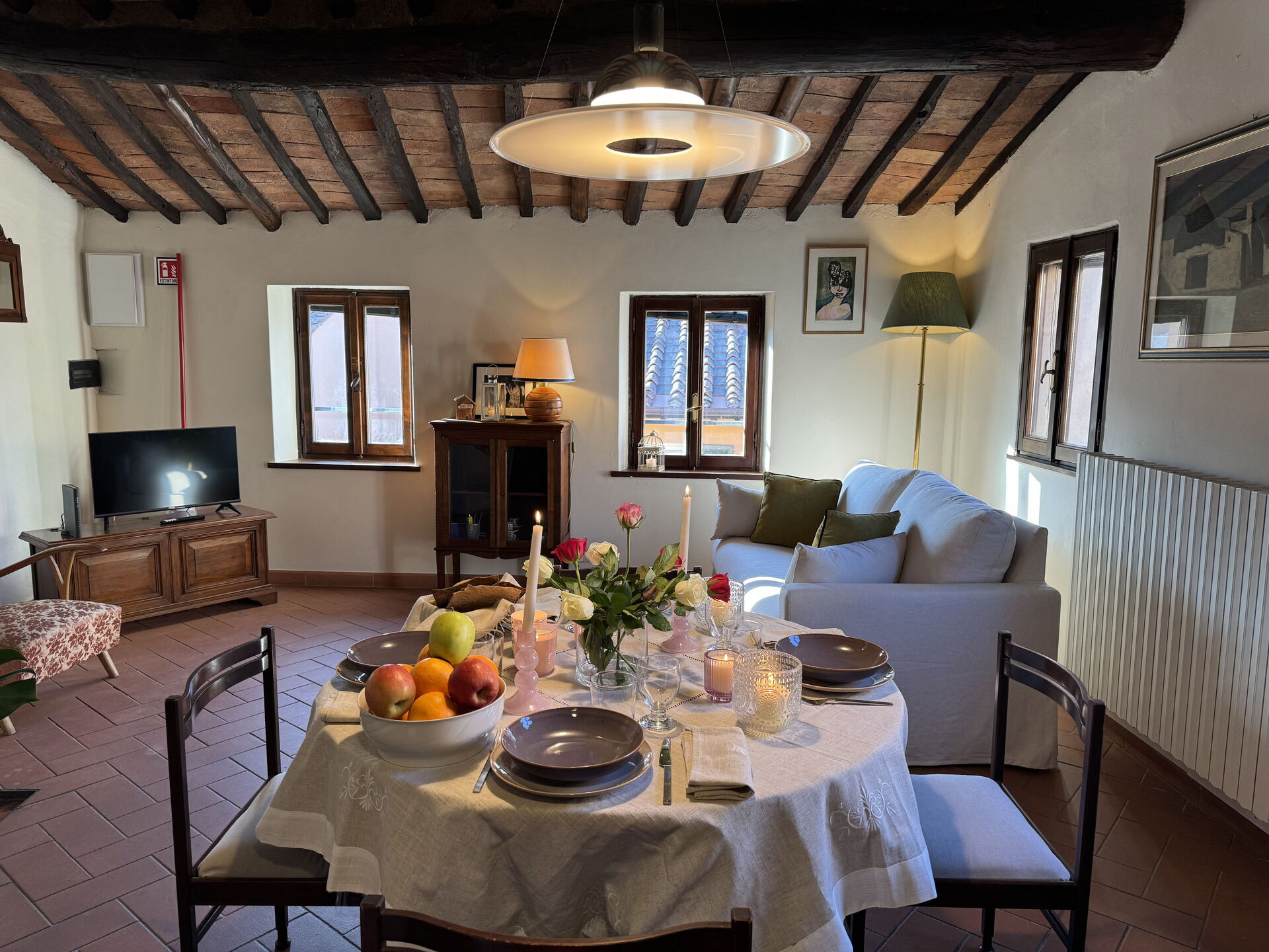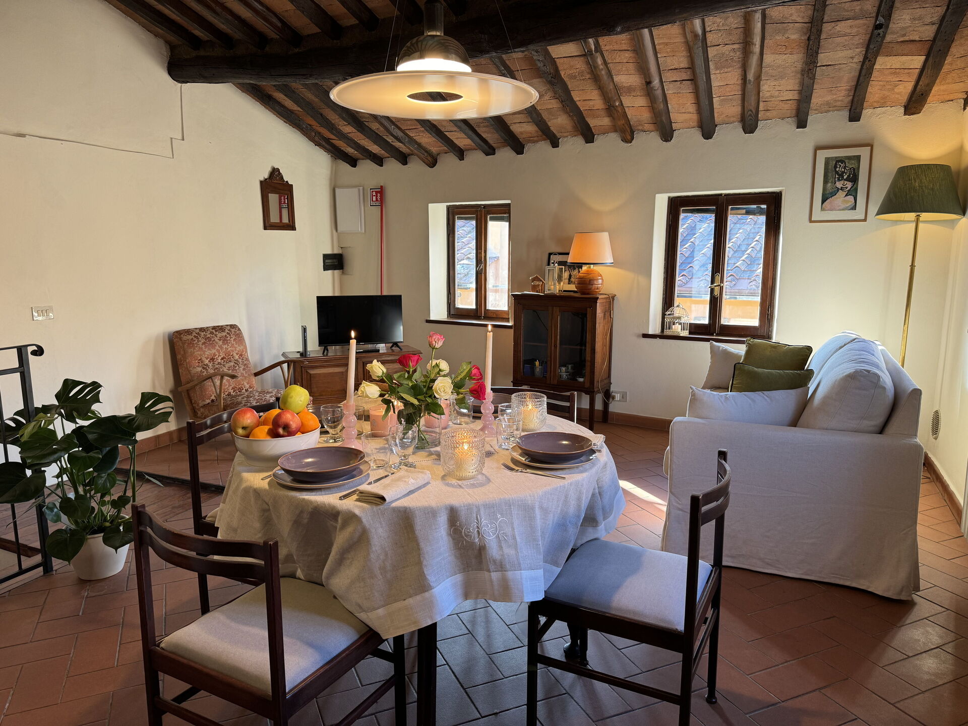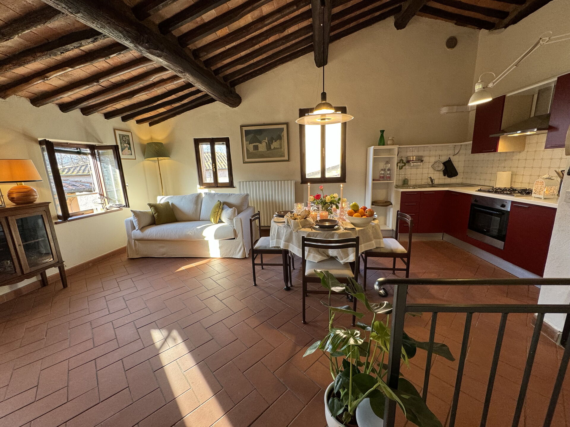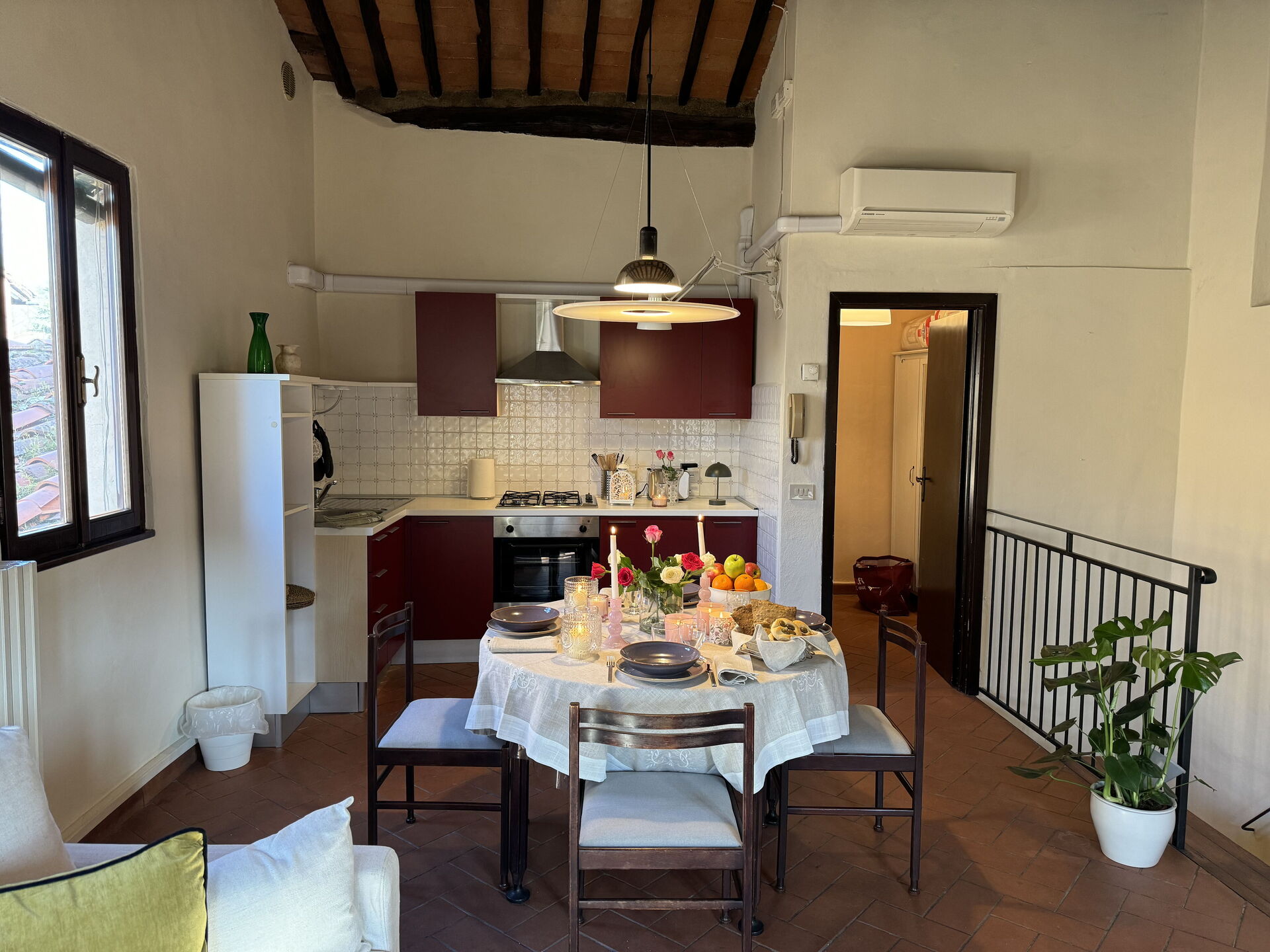 All'arrivo troverai una incantevole casa vacanze pulita e in ottime condizioni, perfetta per una tranquilla vacanza in Toscana. Uno dei fattori che rende il soggiorno in una casa vacanze più piacevole di quello in più camere d'albergo, è la possibilità di rilassarsi tutti insieme dopo una lunga giornata di visite turistiche; un'occasione per godersi un pasto insieme a famiglia e amici con del buon vino locale per concludere al meglio la giornata. Condividere un pasto in compagnia di famiglia e amici è un importante aspetto della cultura toscana. Approfitta della cucina per preparare pasti utilizzando prodotti locali freschi e genuini mentre ti trovi in vacanza. La cucina è provvista di tostapane, fornelli e frigorifero, così come un numero sufficiente di stoviglie e posate per un massimo di quattro persone. Pranza o cena all'aperto, il balcone completamente accessoriato è la cornice ideale per godersi del buon cibo, la compagnia della propria famiglia o gruppo di amici e il bellissimo clima toscano.