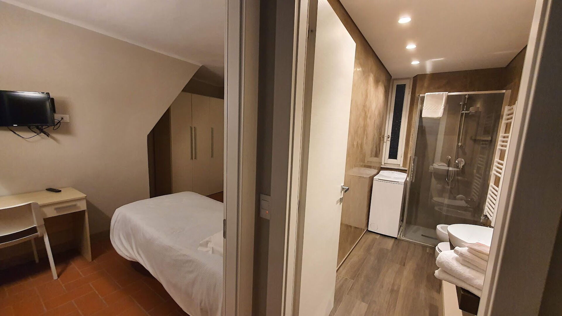 Una volta arrivato troverai una elegante casa vacanze pulita e in ottime condizioni con vista sulla città, perfetta per una tranquilla vacanza in Toscana. Uno dei fattori che rende il soggiorno in una casa vacanze più piacevole di quello in più camere d'albergo, è la possibilità di rilassarsi tutti insieme dopo una lunga giornata di visite turistiche; un'occasione per godersi un pasto insieme a famiglia e amici con del buon vino locale per concludere al meglio la giornata. Se provi piacere nel cucinare per la tua famiglia e i tuoi amici, la proprietà è provvista di una cucina ben accessoriata con macchinetta per il caffè, microonde, tostapane, fornelli e frigorifero, così come un numero sufficiente di stoviglie e posate per un massimo di cinque persone.