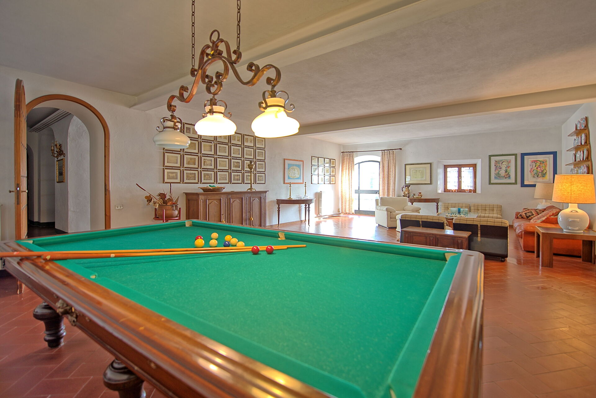 A disposizione degli ospiti di Villa Sorbaiano: ampio giardino panoramico, piscina privata (10 x 4 metri; profondità: 1,3 metri), barbecue in muratura, 10 camere che ospitano fino ad un massimo di 20 persone; 5 bagni + 1 bagno di servizio, tavolo da biliardo, collegamento ad internet wi-fi (free wi-fi), mare a 30 km di distanza (Cecina Mare)