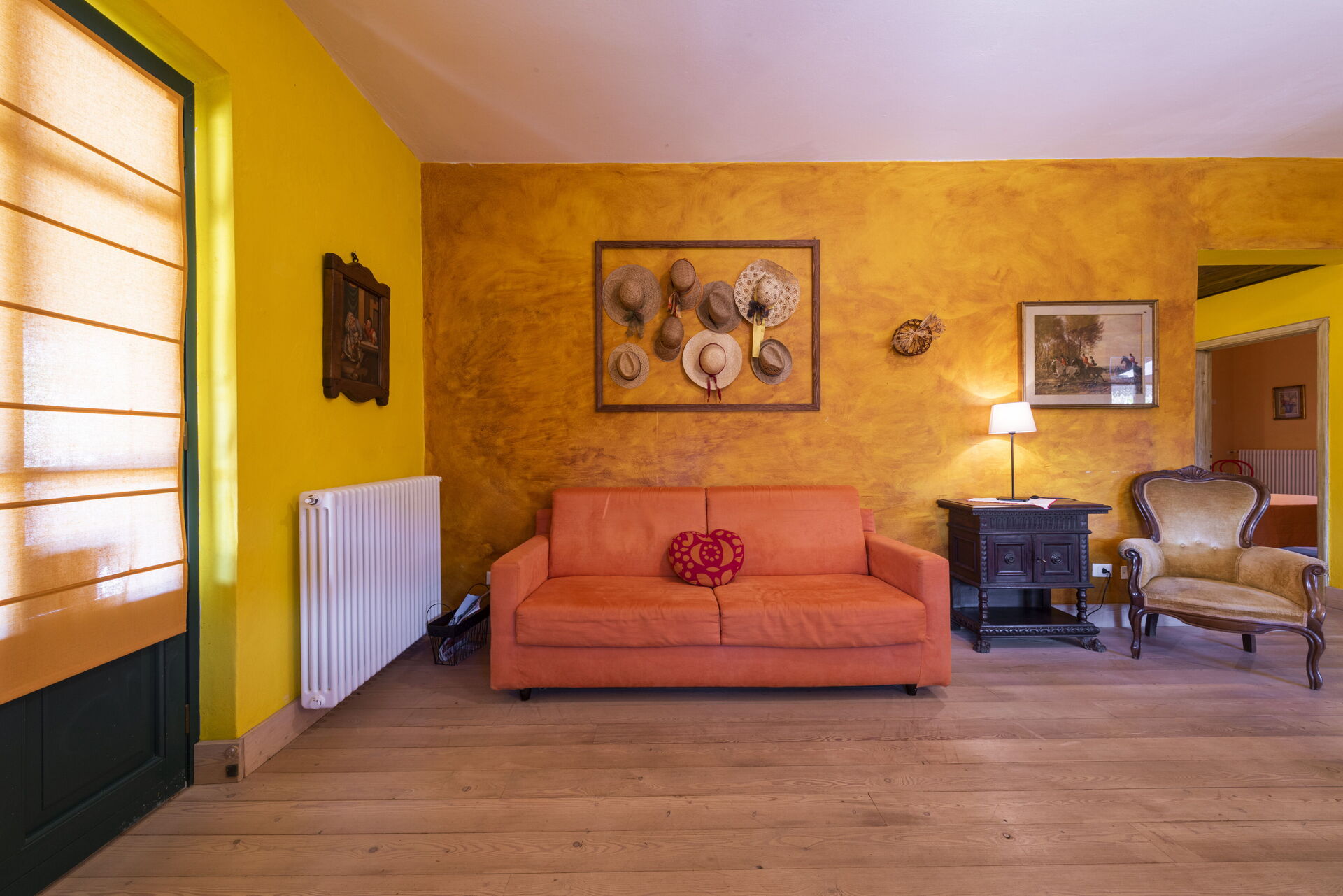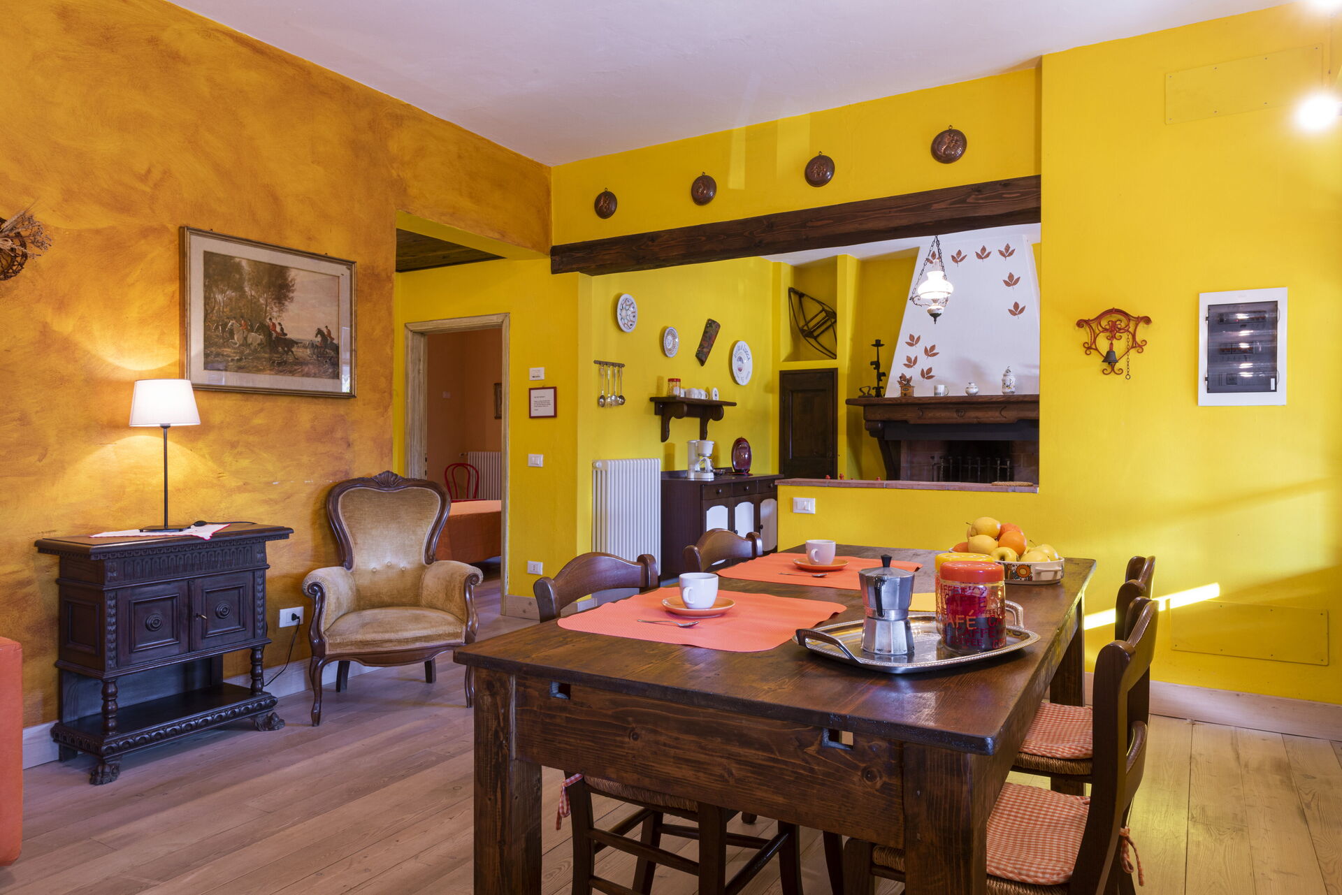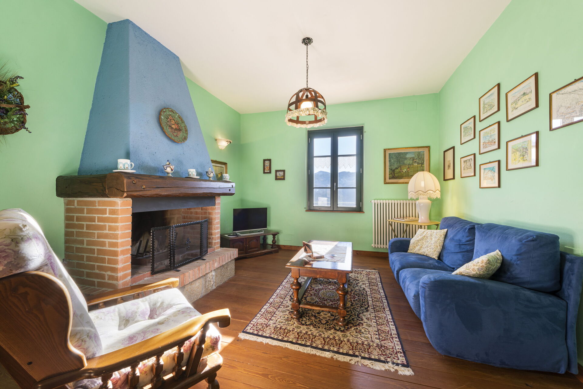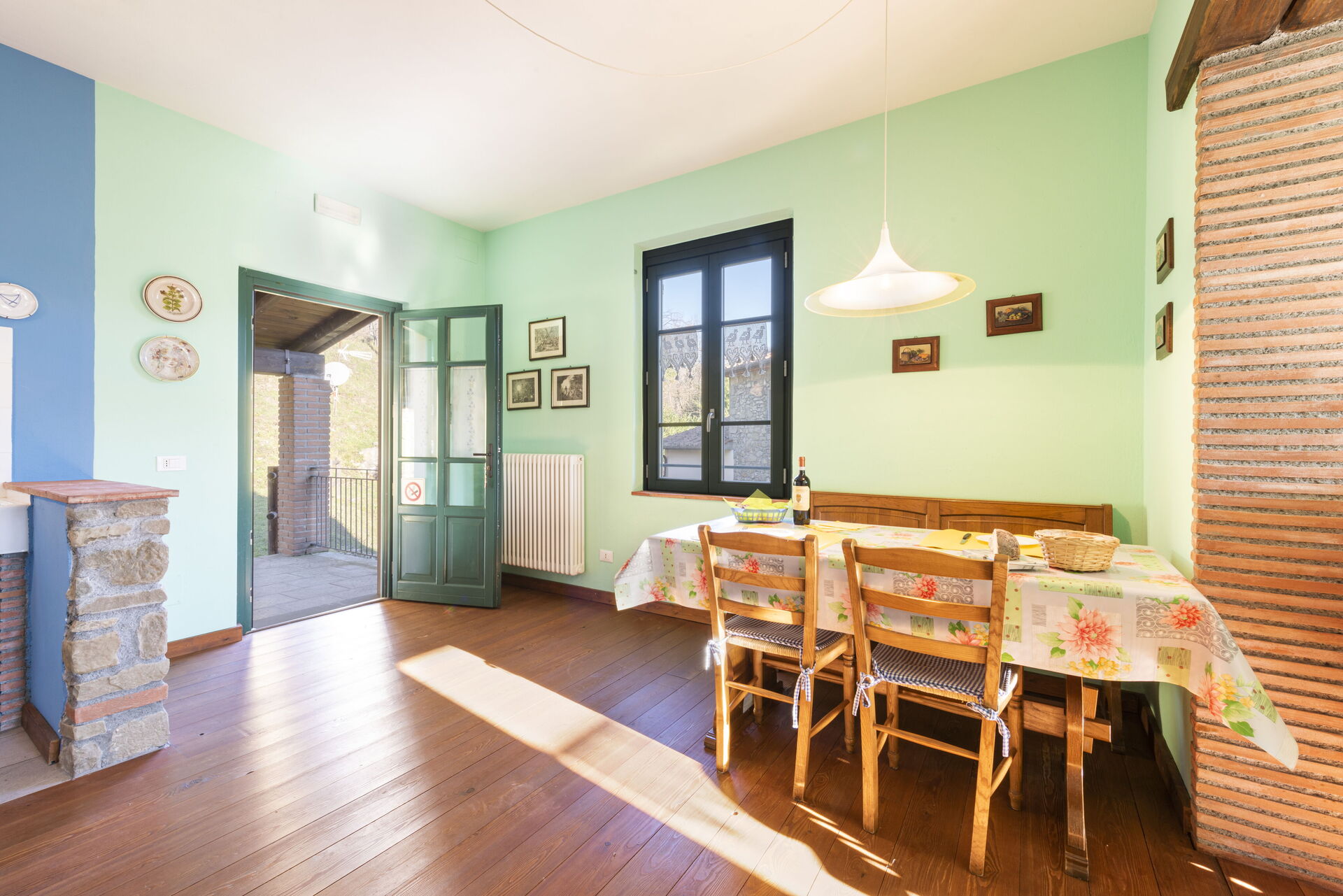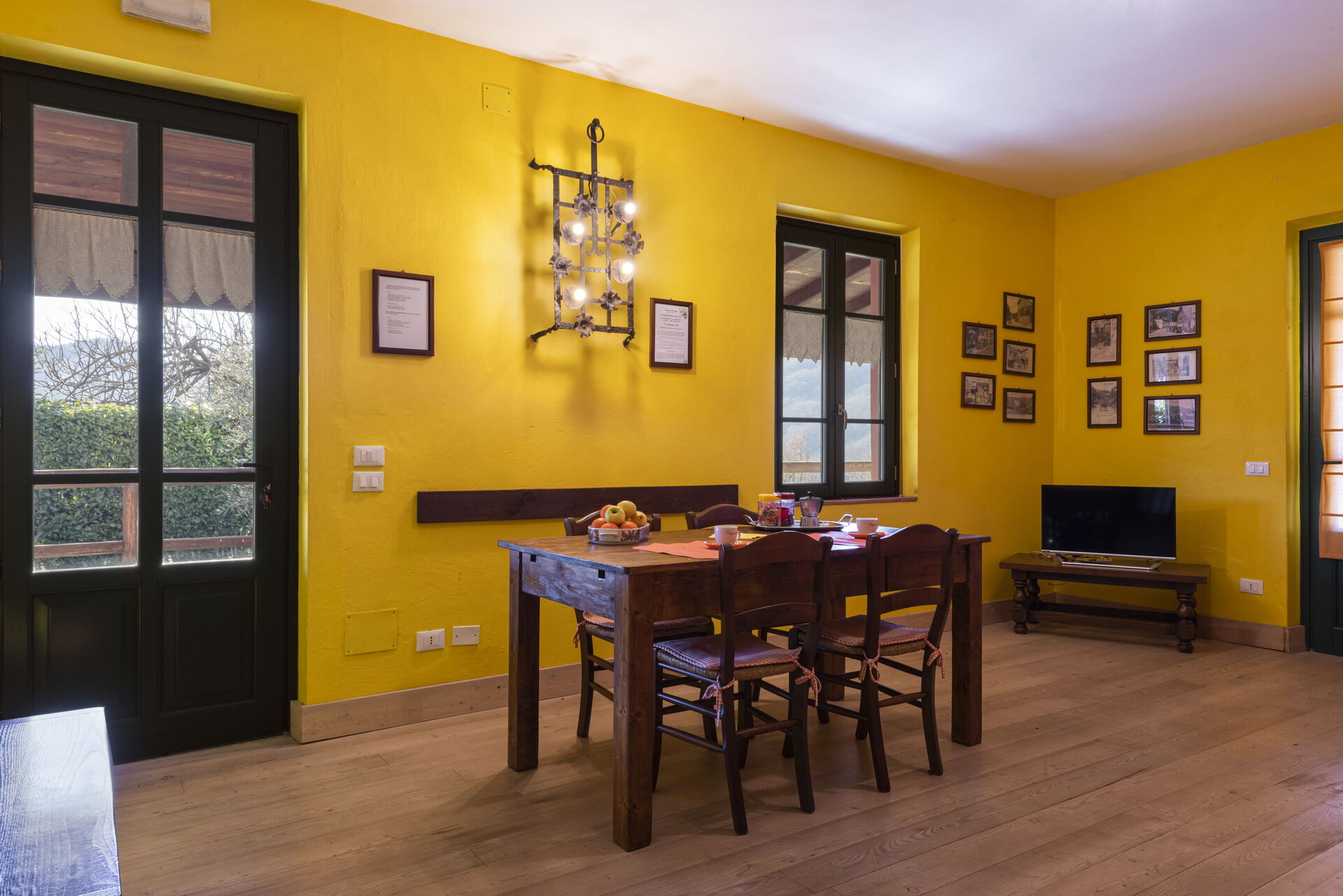 Soggiorno: divano, poltrona, tavolo da pranzo (persone: 6), internet, televisione, uscita sul giardino.