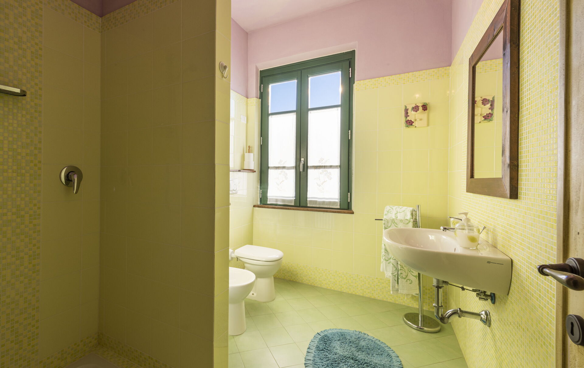 Bagno 2: lavandino, wc, bidet, doccia.