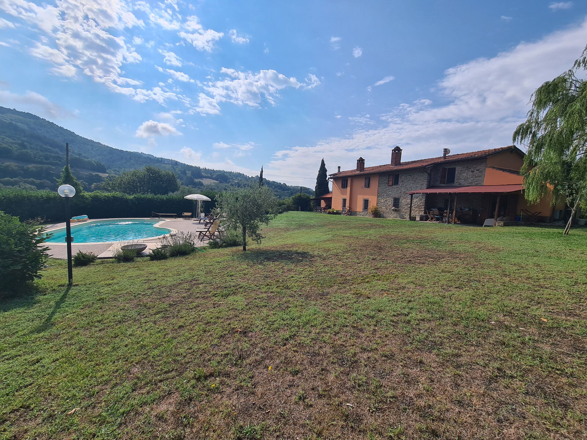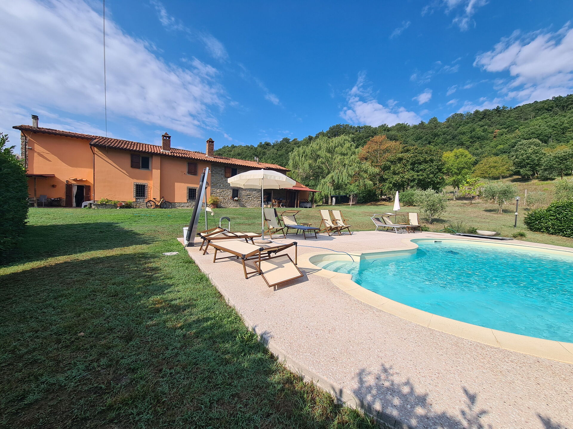 Una volta arrivato troverai una splendida casa vacanze pulita e in ottime condizioni con vista sulle colline, perfetta per una tranquilla vacanza in Toscana. Dopo una frenetica giornata ricca di shopping, concediti del tempo con famiglia e amici a bordo piscina per gustarti una bibita rinfrescante o un buon calice di vino - non c'è niente di meglio per rilassarti alla fine della giornata. All'aperto avrai a tua disposizione anche un patio e un barbecue. Se provi piacere nel cucinare per la tua famiglia e i tuoi amici, la proprietà è provvista di una cucina ben accessoriata con macchinetta per il caffè, microonde, fornelli e frigorifero, così come un numero sufficiente di stoviglie e posate per un massimo di sei persone. Se preferisci mangiare all'aperto, c'è a tua disposizione un patio completamente accessoriato dove potrai goderti il bel tempo durante i tuoi pasti.