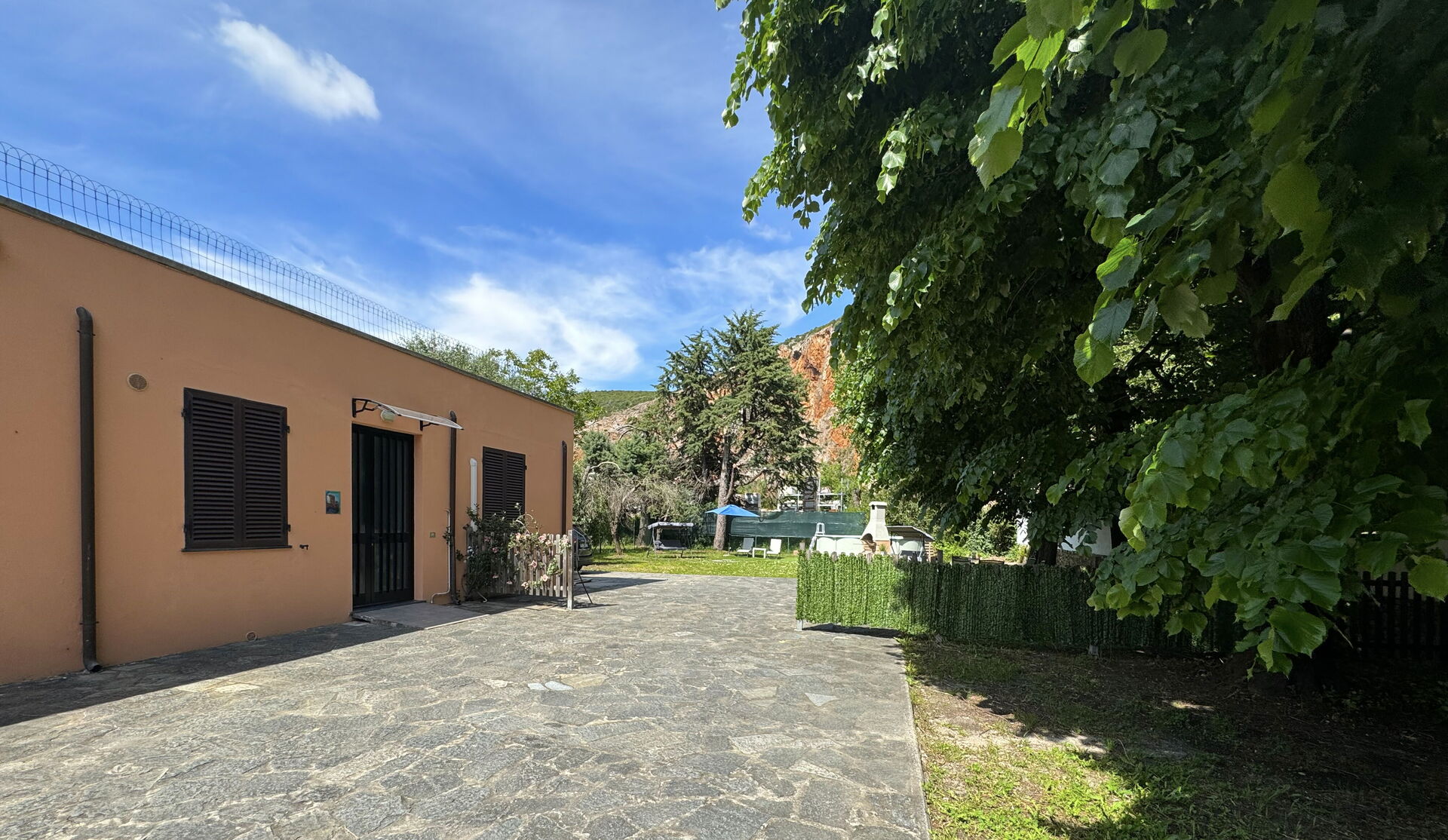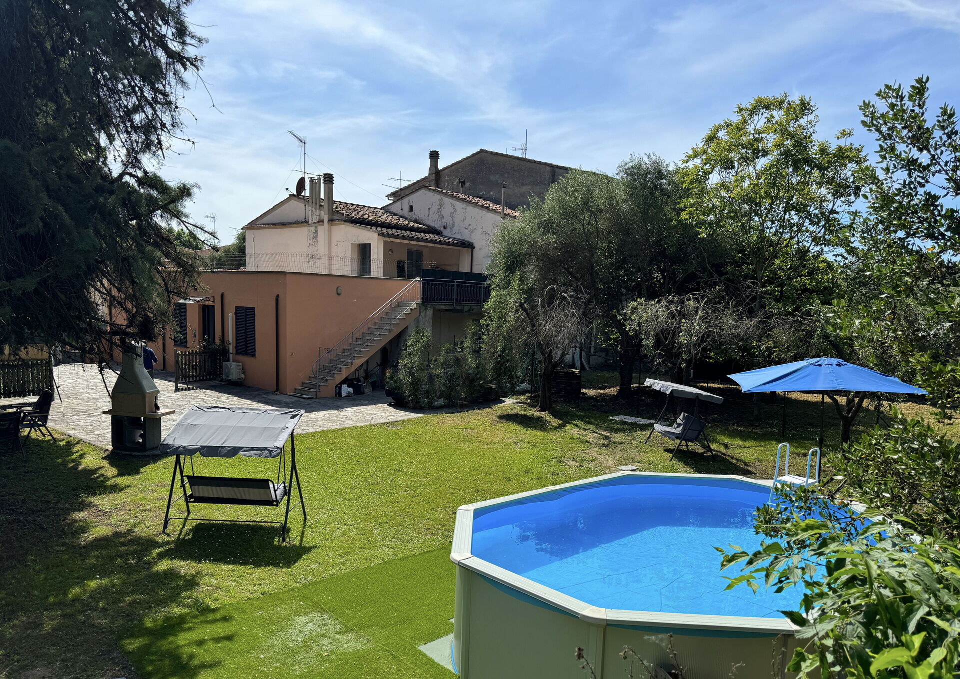La casa dispone di un giardino privato di circa 300 mq e di una piscina fuori terra ovale in acciaio (4,9 m x 3,60, profonda 1,20) ad uso esclusivo degli ospiti. La proprietà è completamente recintata da rete (in alcuni punti da rete e muretto, altezza 1.30m). È AMMESSO UN SOLO ANIMALE DOMESTICO DI TAGLIA PICCOLA O MEDIA. I CANI DI TAGLIA GRANDE NON SONO AMMESSI.