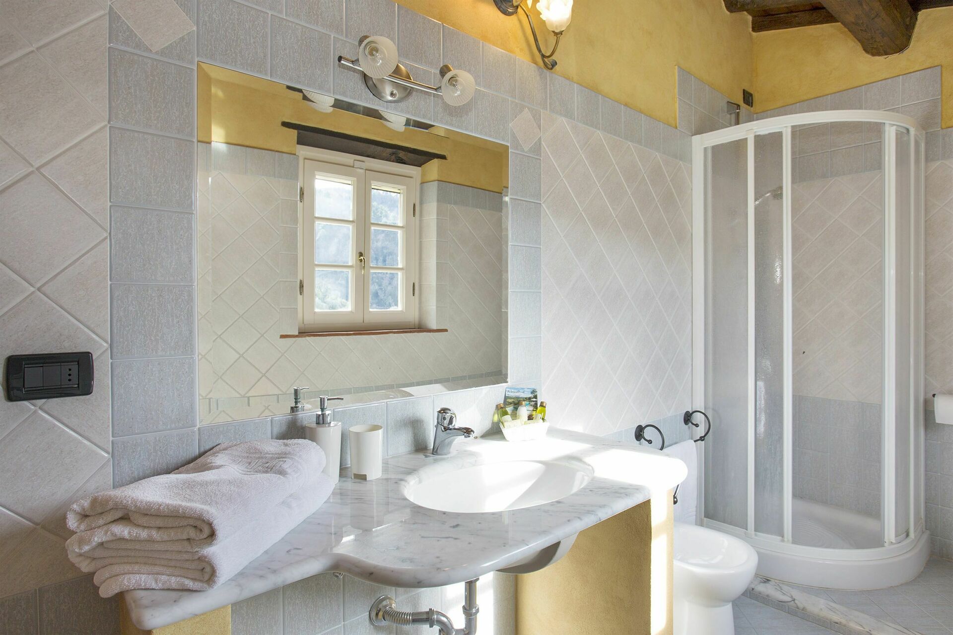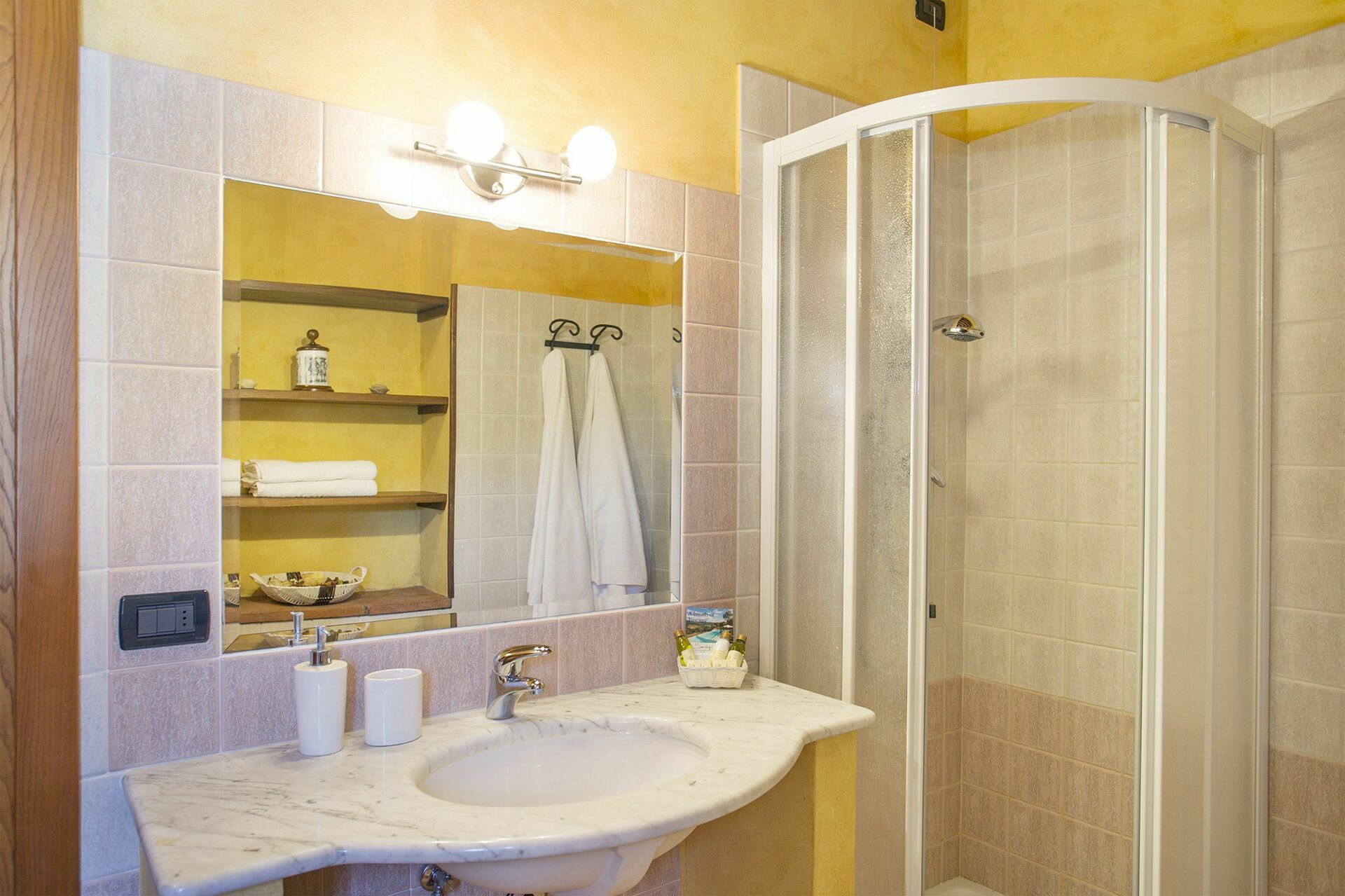 Bagno 2: lavandino, wc, doccia, asciugacapelli.