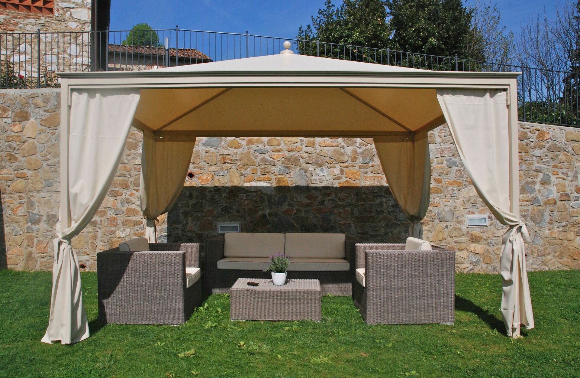 Una caratteristica importante di questa villa è la presenza di recinto intorno alla zona della piscina, dotato di cancello che si può chiudere in modo da garantire la massima sicurezza se ci sono bimbi piccoli. L'area piscina dispone di un comodo gazebo con divano e sedie. La piscina è dotata di sistema per nuoto controcorrente.