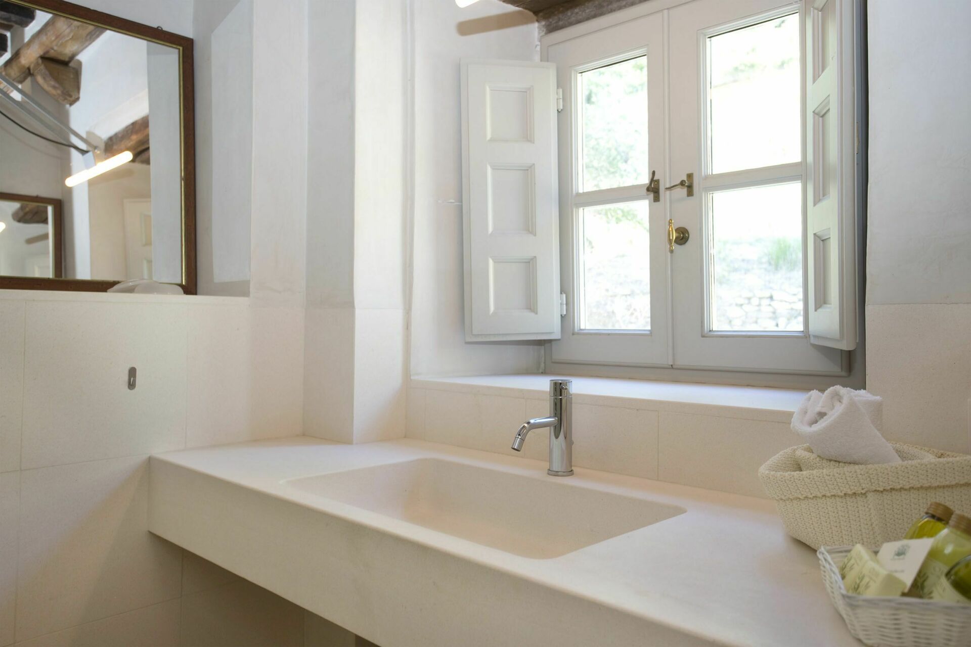 Camera da letto con bagno 1: letto matrimoniale, internet WIFI, aria condizionata, ventilatore portatile, lavandino, wc, doccia.